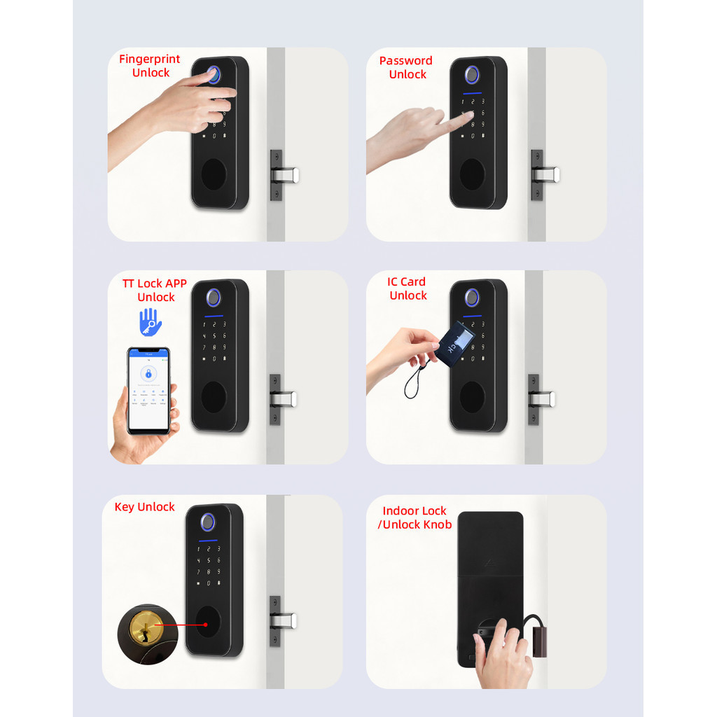 RAYKUBE T3 TT Lock Digital Fingerprint Door Lock Deadbolt Lock with 60/70mm Latch Key/Password/Card/ TT Lock APP Remote Unlock