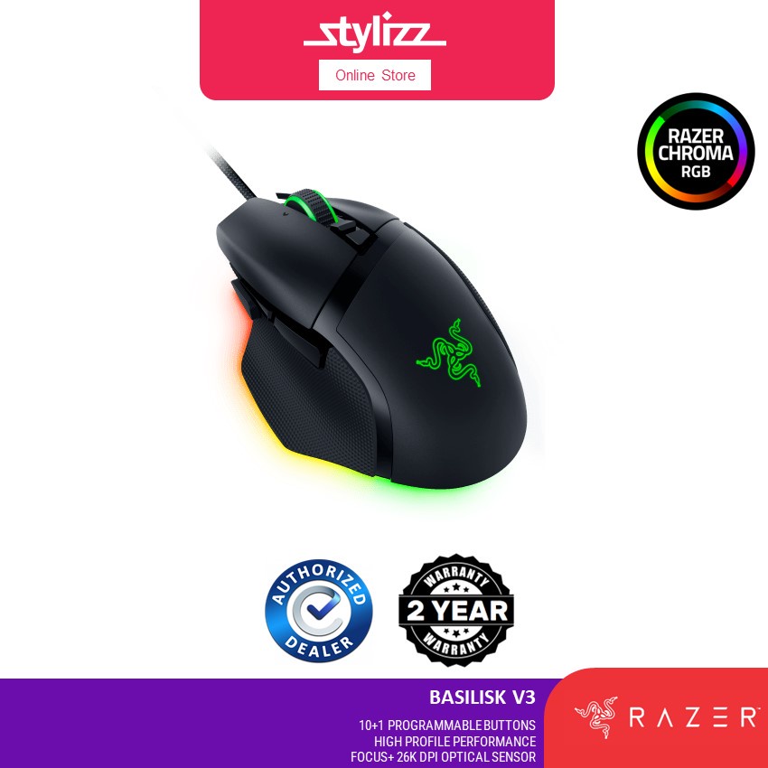 RAZER BASILISK V3 ERGONOMIC WIRED GAMING MOUSE - HIGH PROFILE PERFORMANCE, 10+1 PROGRAMMABLE BUTTONS