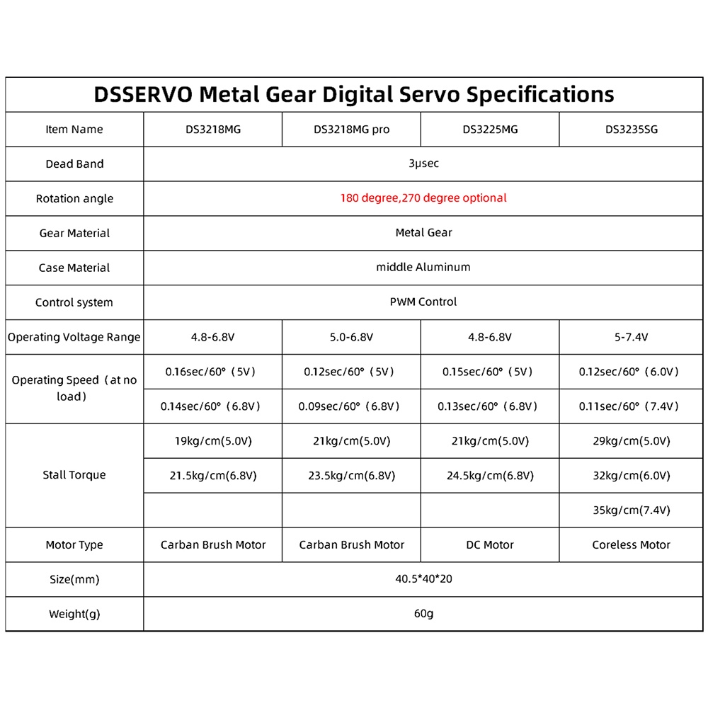 RC Digital Servo Dsservo Waterproof Servo DS3218 20KG DS3225 25KG DS3235 35KG Metal Gear Digital Servo DS5160 ssg 60KG for 1/8 1/10 RC Cars