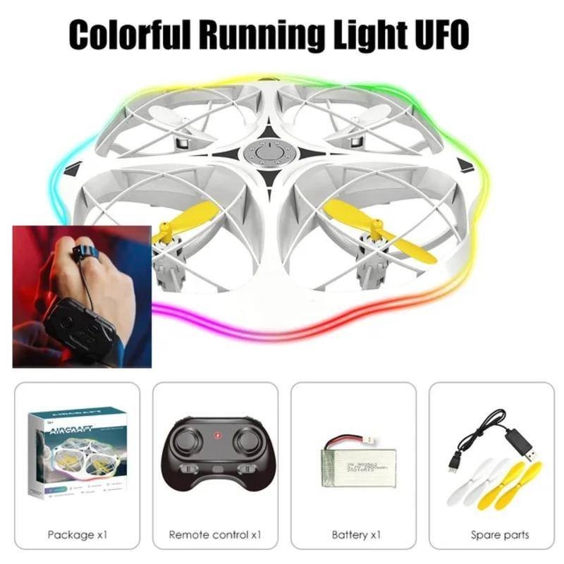 RC UFO Helicopter Drone Gravity Sensing Watch Remote Control Airplane LED Light Aircraft Intelligent Four Axis Flying Saucer Boy's Toy