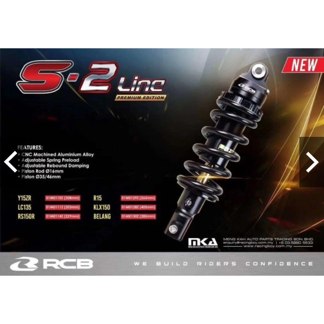 RCB Monoshock Mono S2 Line Y15Zr / Y16 / LC135 / RS150R / FZ150 / R15 / BELANG