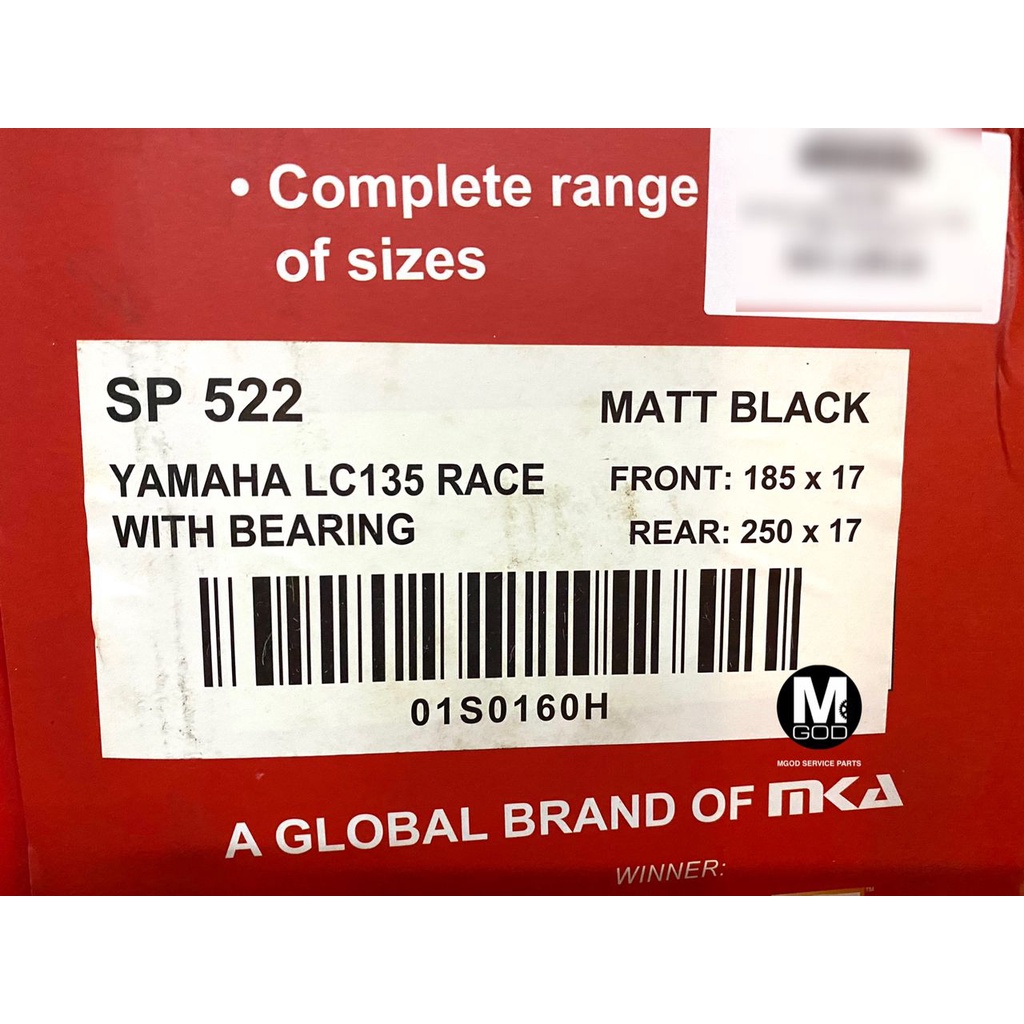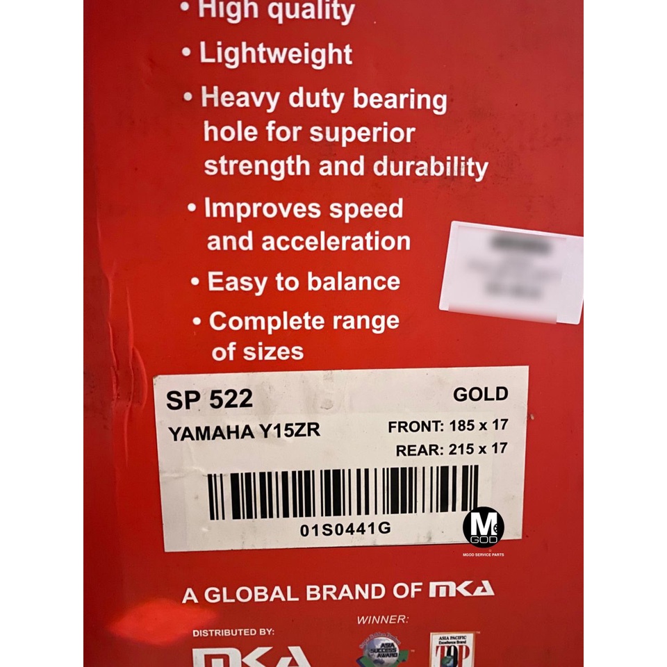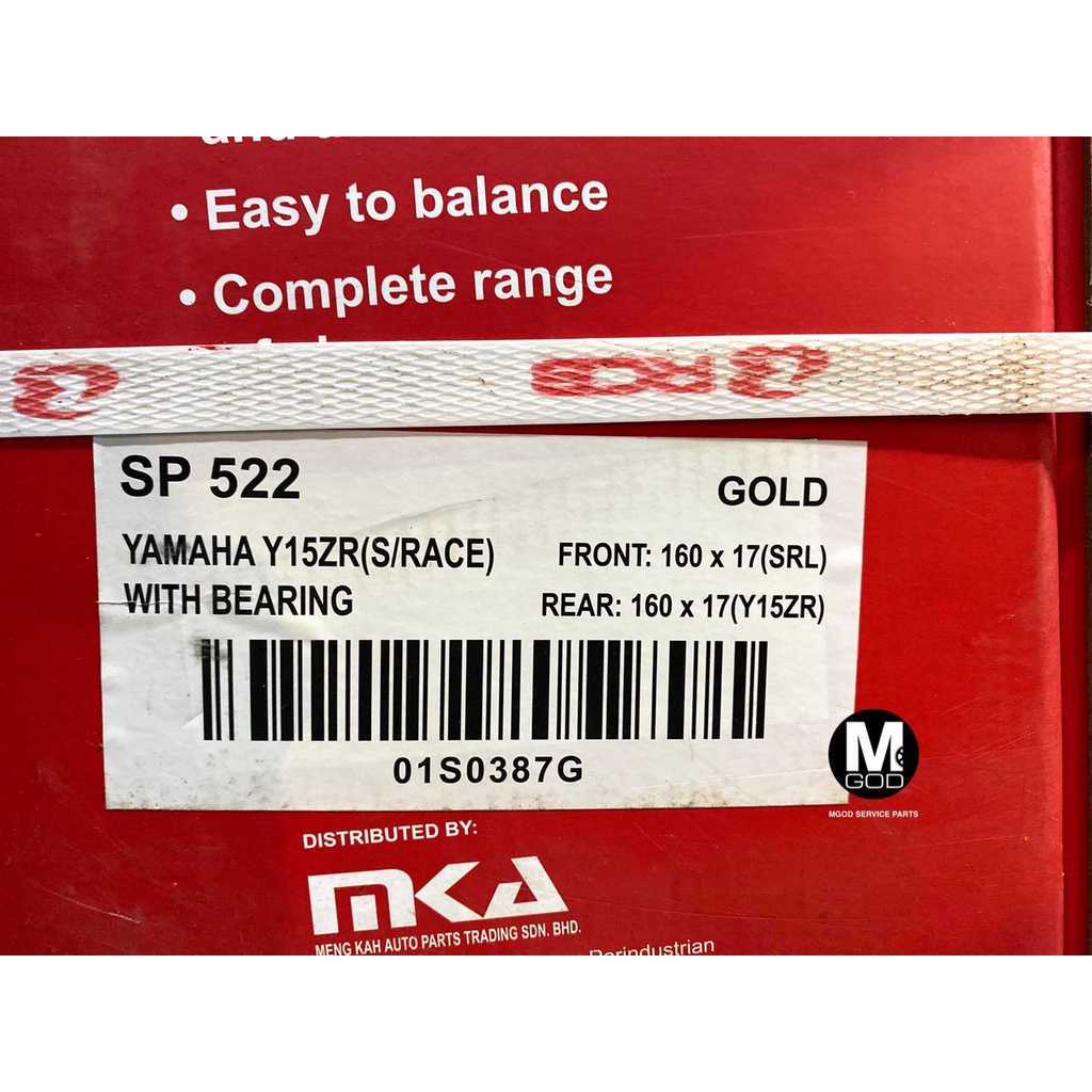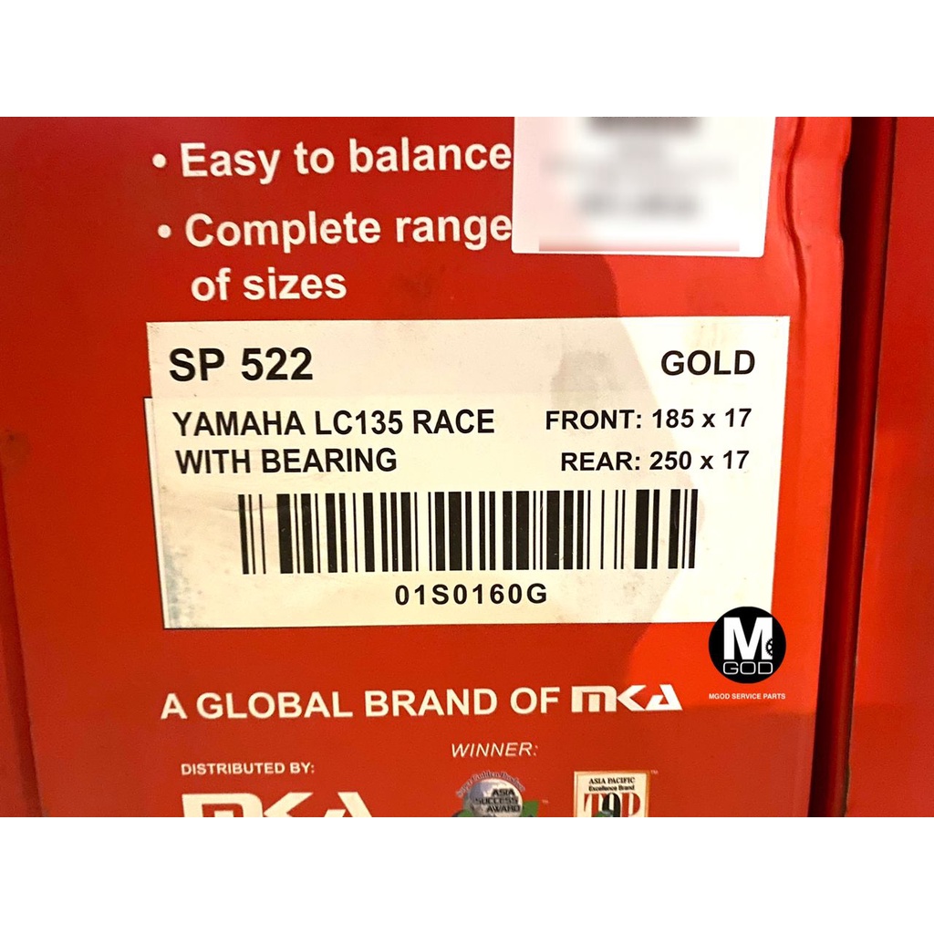 RCB SP522 SPORT RIM 100% ORIGINAL RCB Y15ZR Y16ZR R15 R25 MT25 MT15 RS150R LC315 LC5S RACING BOY YAMAHA HONDA GOLD BLACK