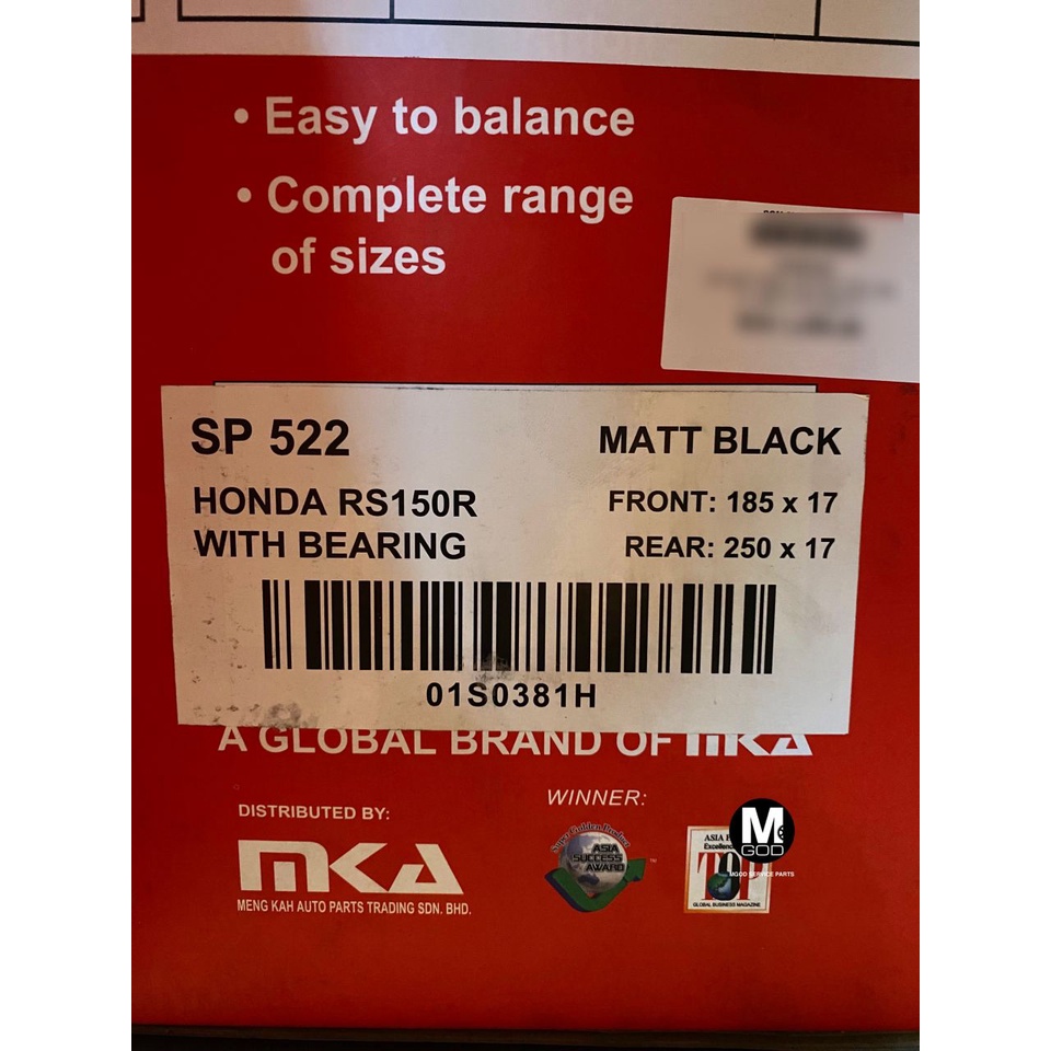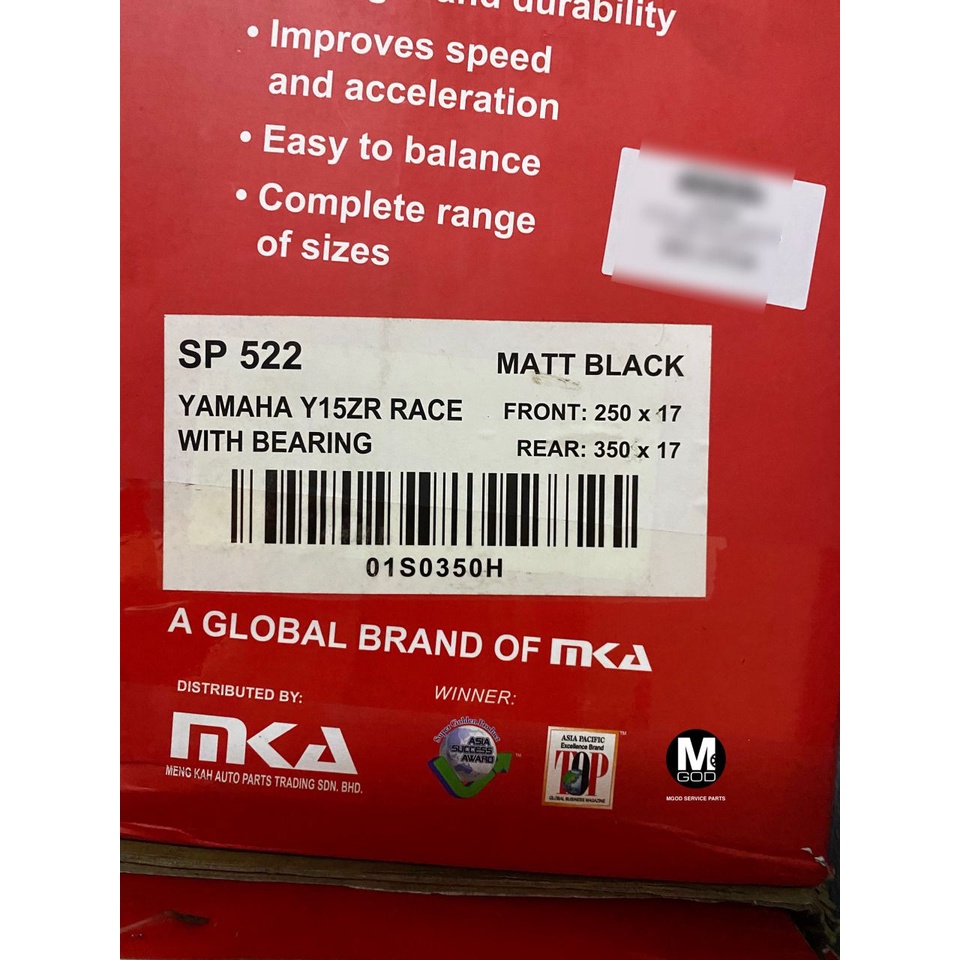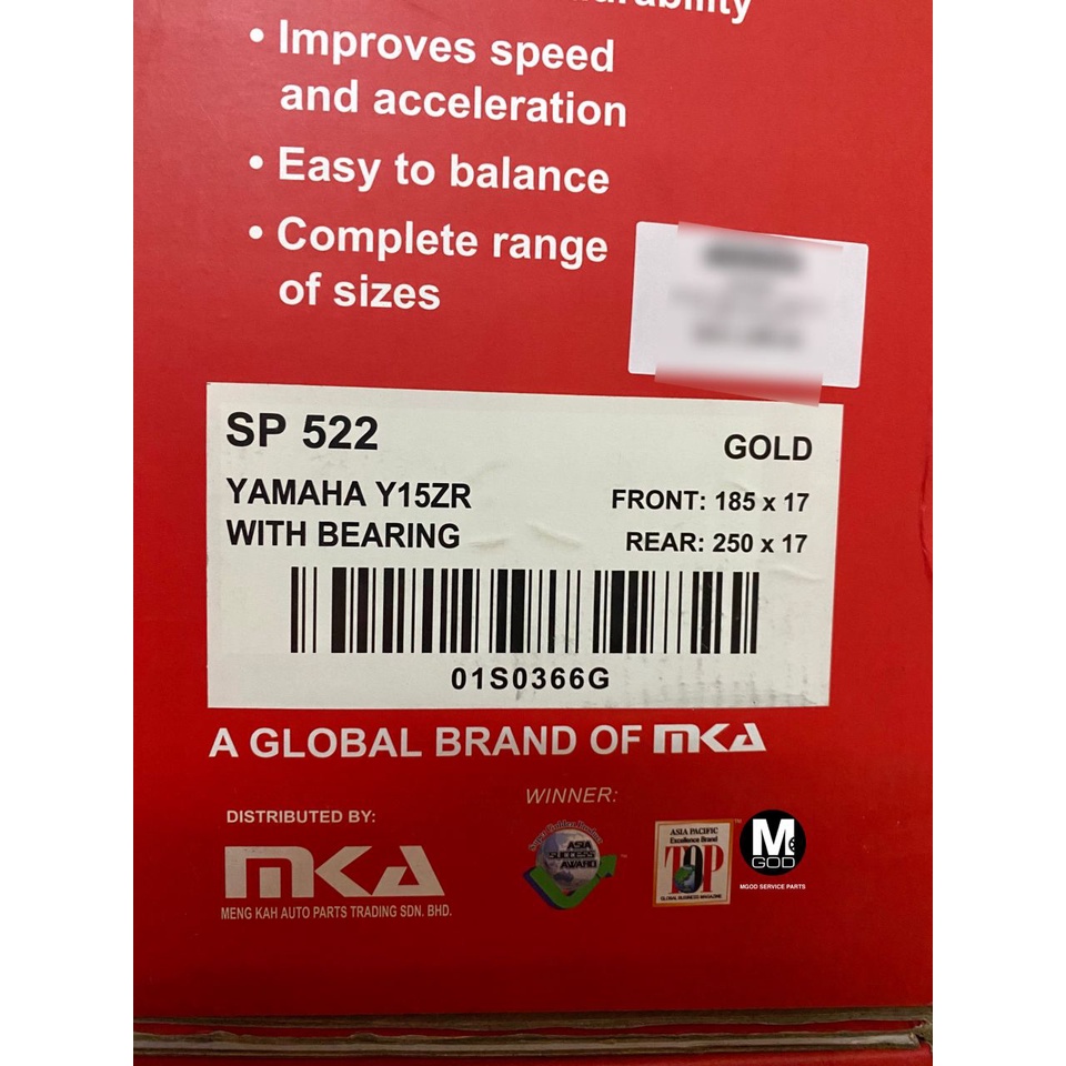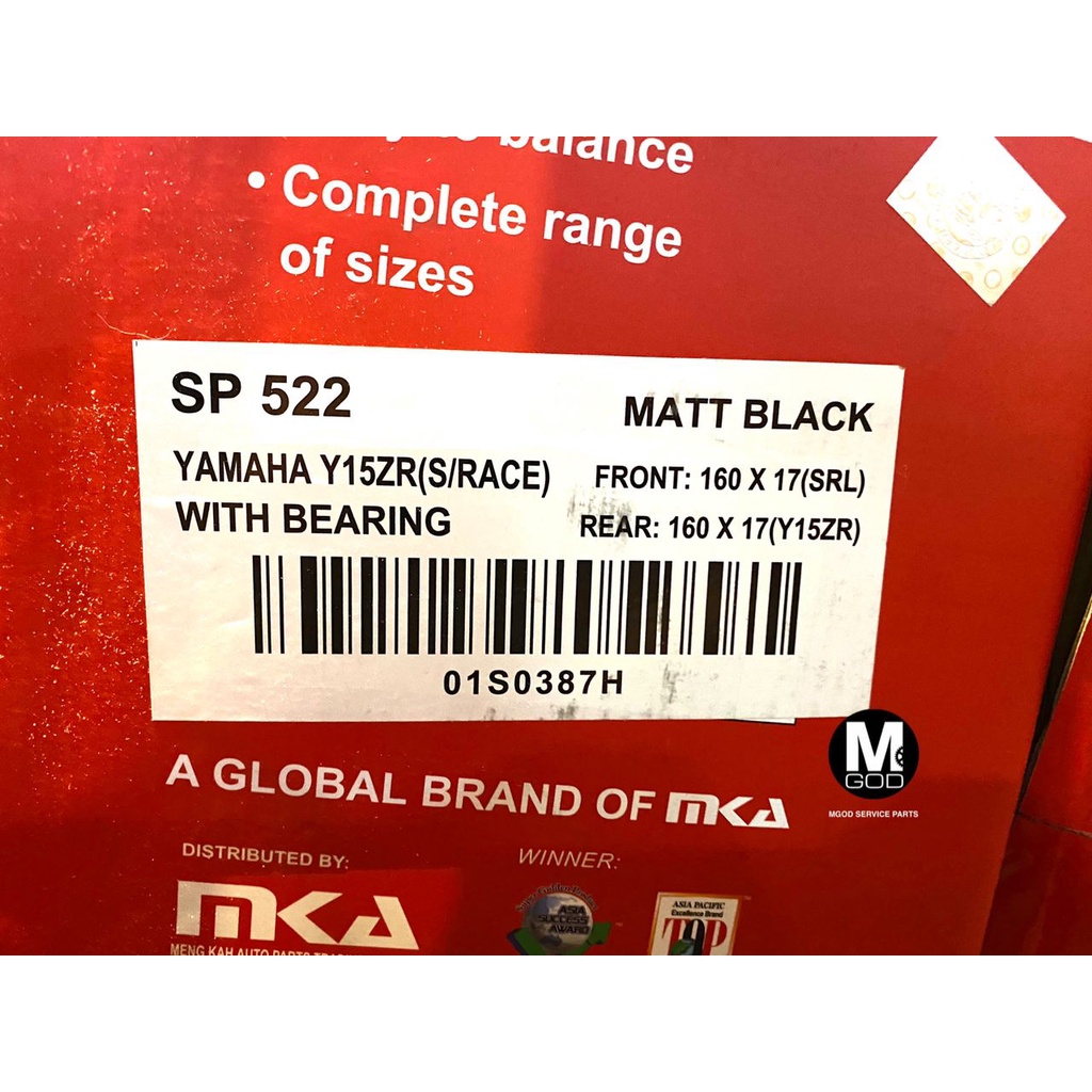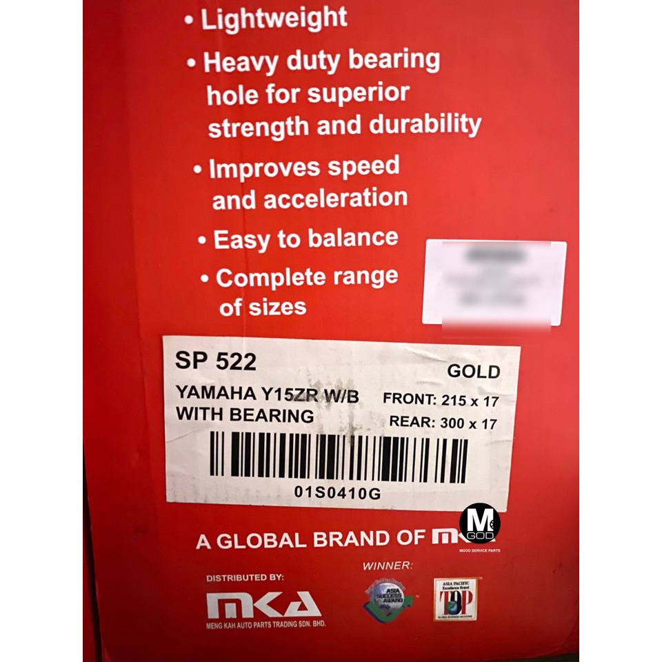 RCB SP522 SPORT RIM 100% ORIGINAL RCB Y15ZR Y16ZR R15 R25 MT25 MT15 RS150R LC315 LC5S RACING BOY YAMAHA HONDA GOLD BLACK