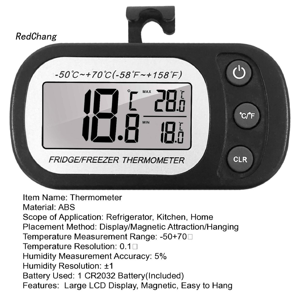 RC~ Waterproof Refrigerator Thermometer Lcd Digital Refrigerator Thermometer Waterproof Fridge Freezer Temperature Monitor for Kitchen Magnetic Hanging Electronic Gauge