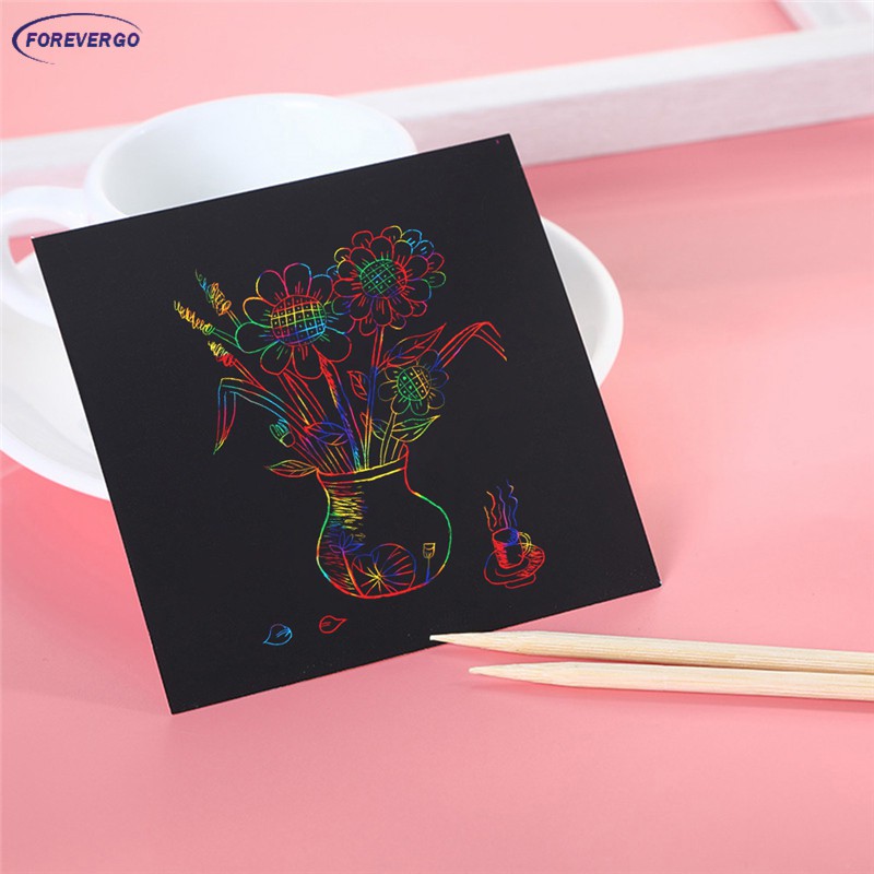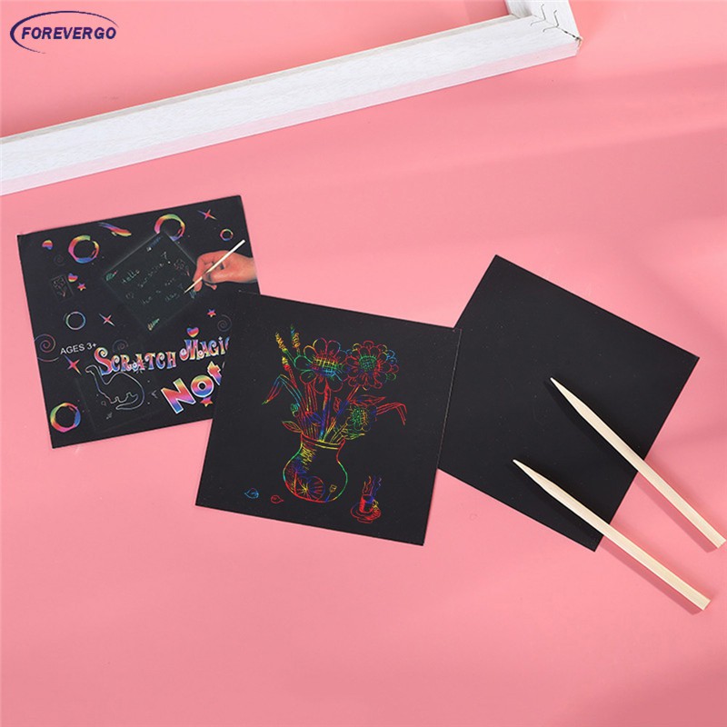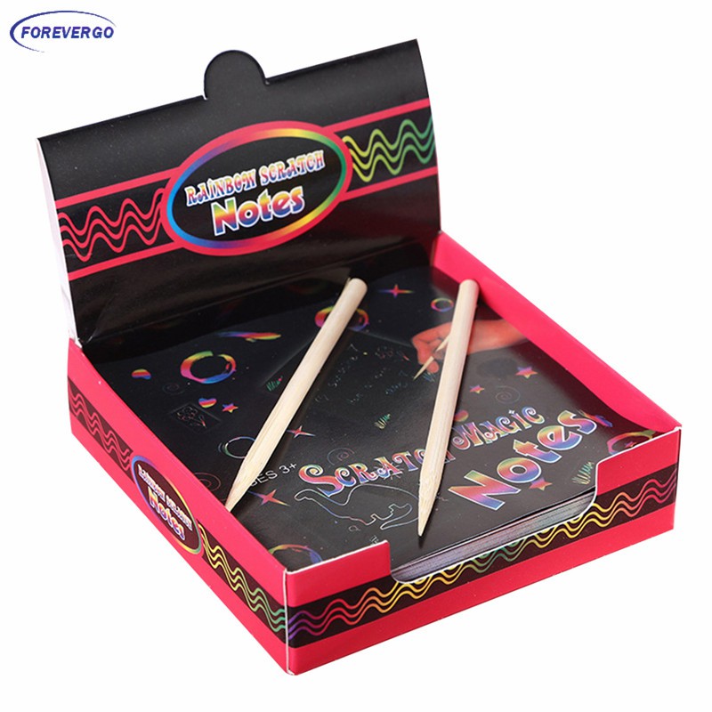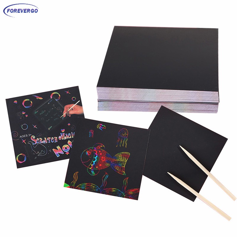RE 100 pcs Rainbow Magic Scratch Paper for Kids Black Scratch Off Art Boards with 2 Wooden Stylus