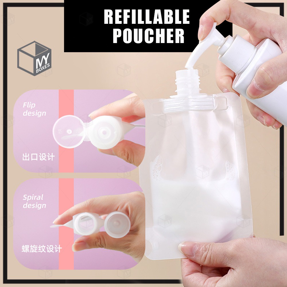 READY STOCK!!! Dispenser bag Refillable Pouches Shampoo Liquid Cosmetic Storage Container