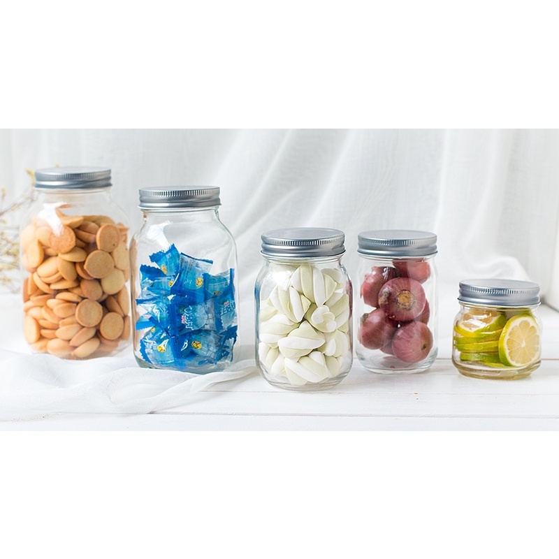 READY STOCK!!! MAISON/SQUARE ROUND GLASS JAR 300-500ML WITH METAL LUG CAP