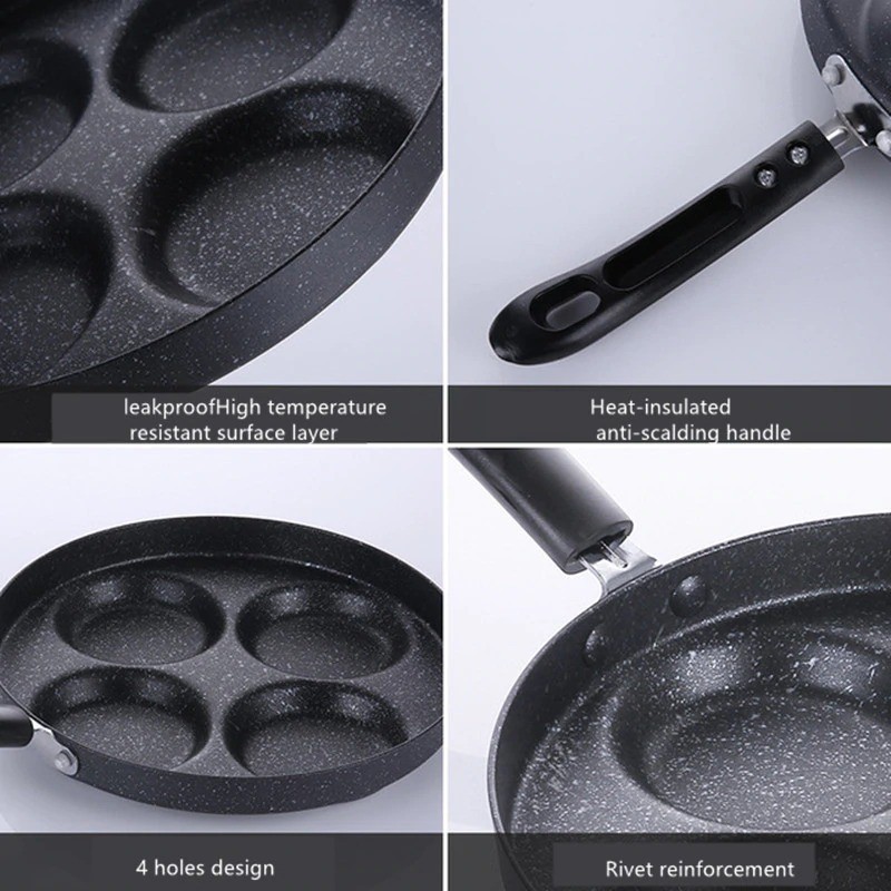 READY STOCK🇲🇾 4 Hole Omelet Pan For Eggs Ham Pancake Maker Non Stick Frying Pan Fast Breakfast Cooking Pan