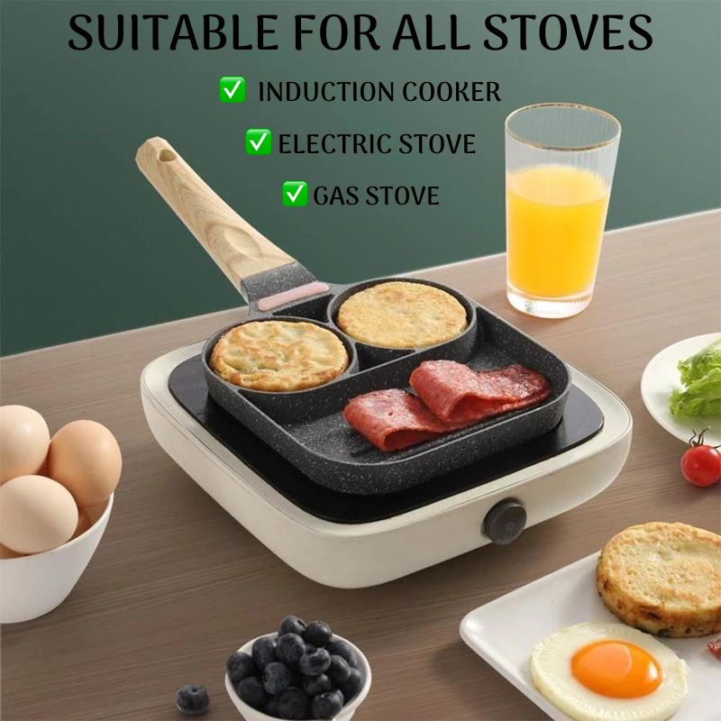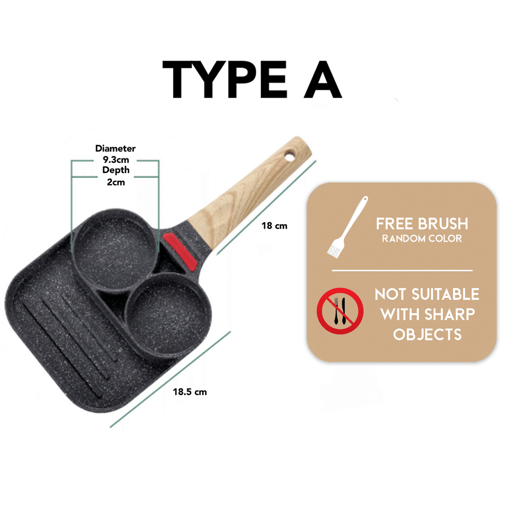 READY STOCK🇲🇾2/3 Hole MaiFan Stone Omelet Egg Pan Ham Bacon Pancake Maker Non Stick Frying Pan Fast Breakfast Cooking