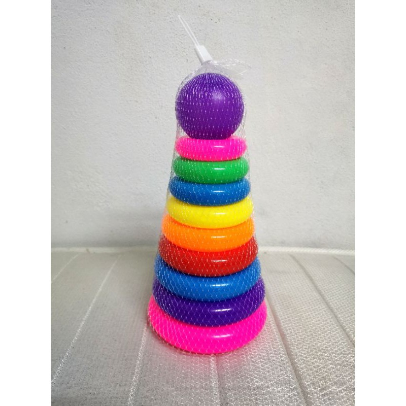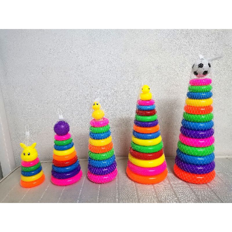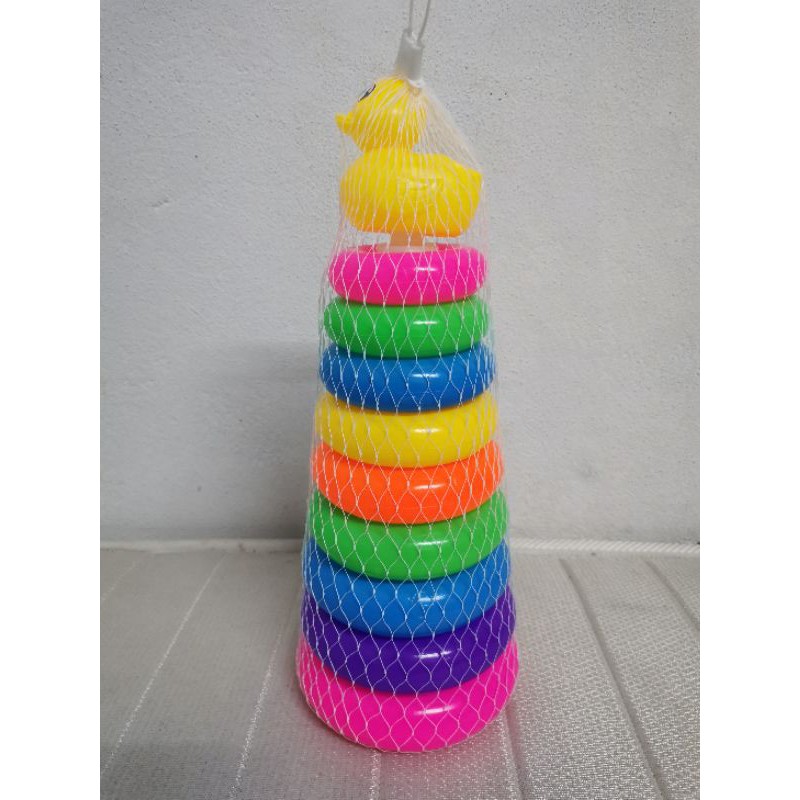 READY STOCK !!! Plastic Baby Kids Stacking Stack Up Educational Toy Rainbow Ring Tower duck tower