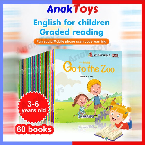 READY STOCK !! 60 Book/Set Preschool English Story Picture Book Early Education Learning Kids Zero Foundation B024