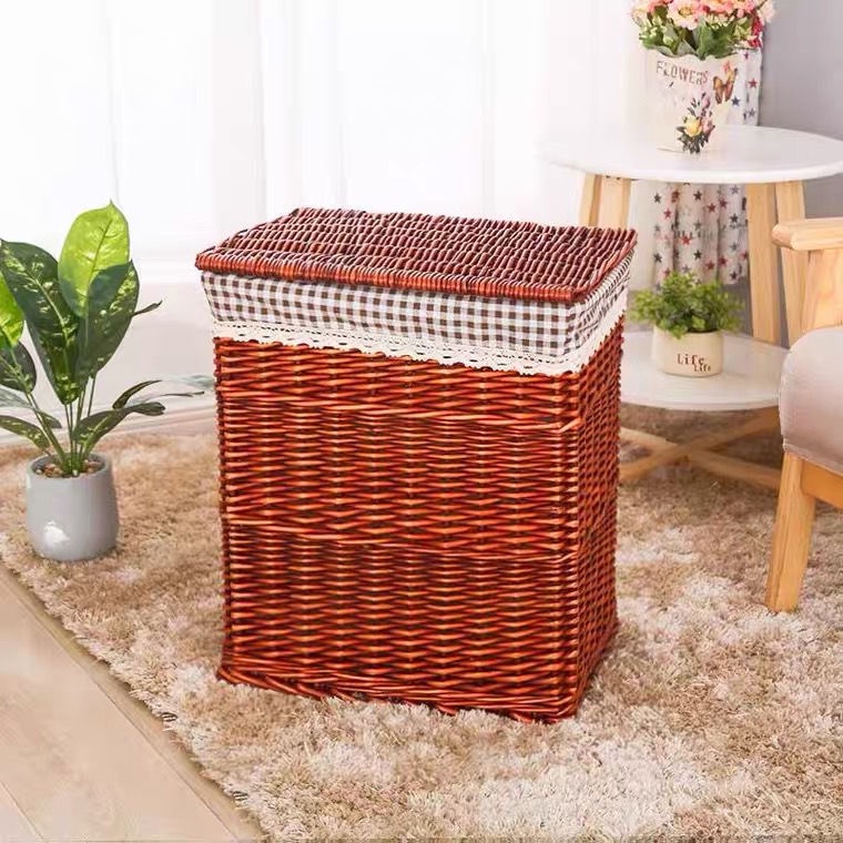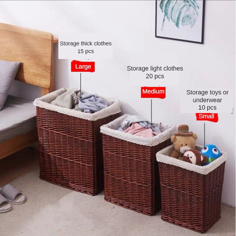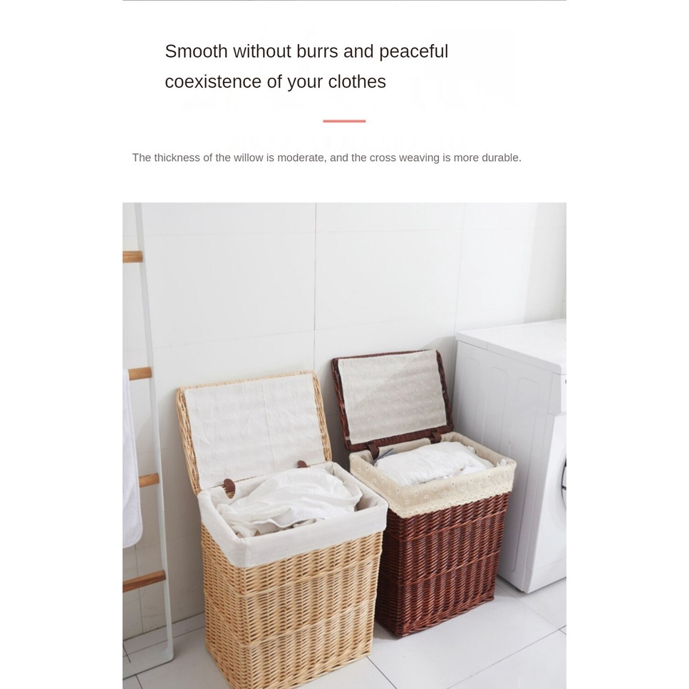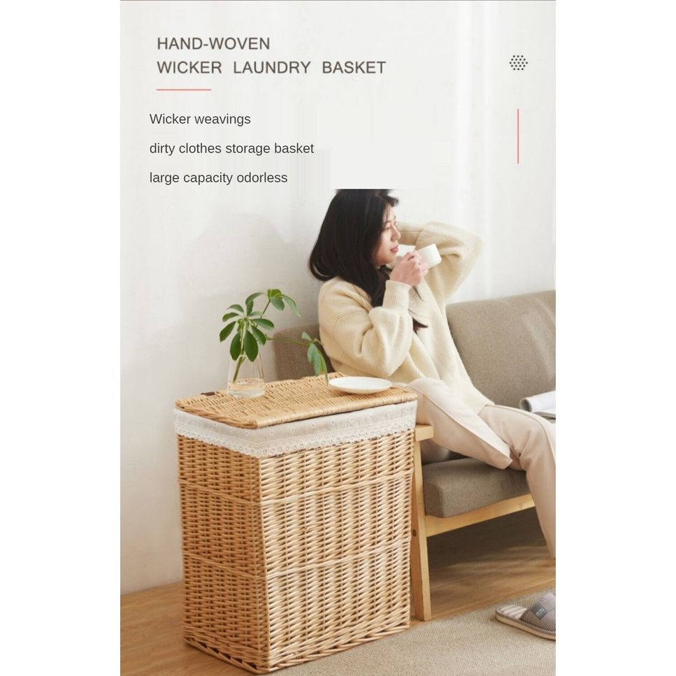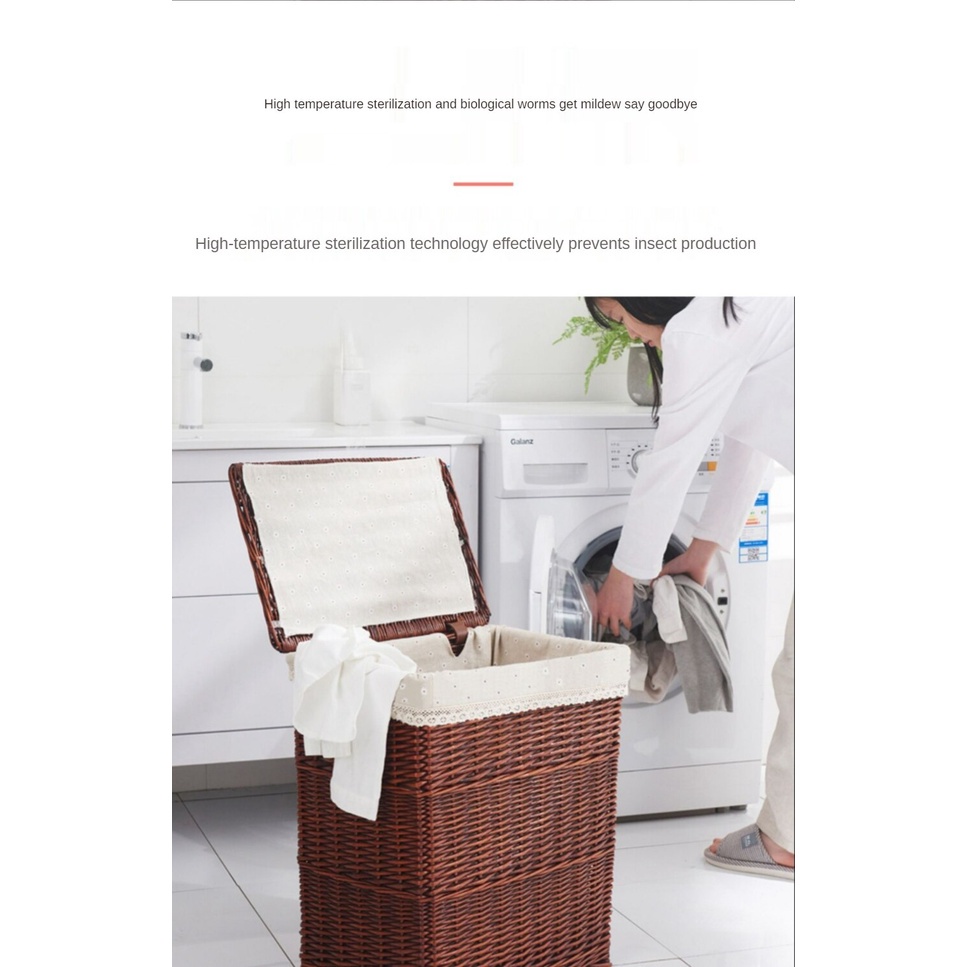 READY STOCK ✿WindSing✿ Rattan Laundry Basket with Lid Hand-woven Dirty Clothes Storage Basket Toy Storage Basket