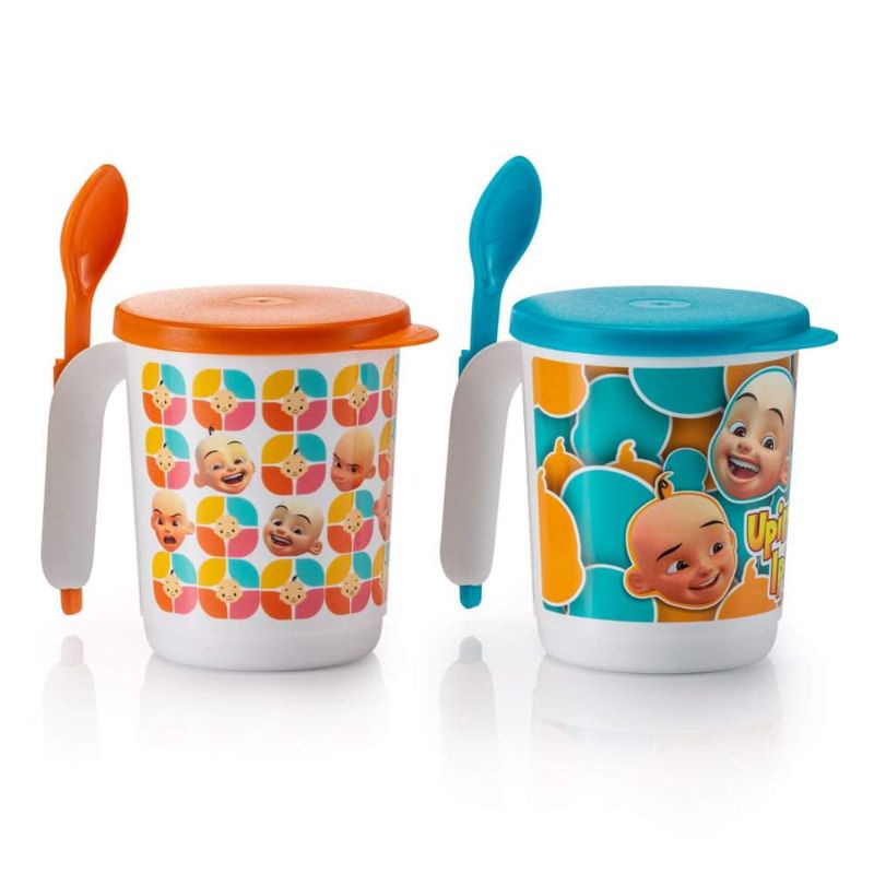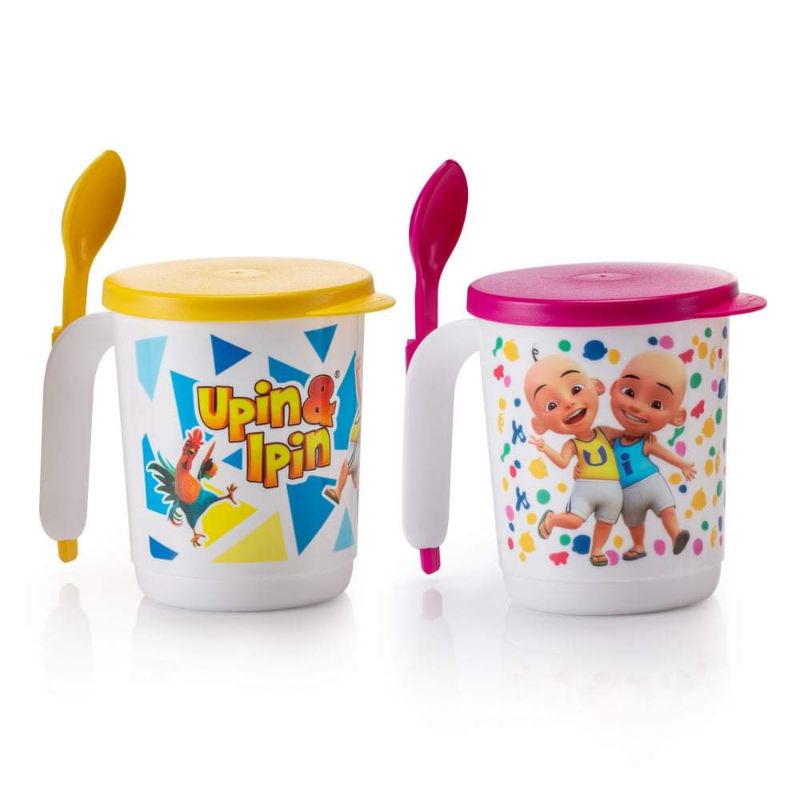 READY STOCK (2pcs or 4pcs) Tupperware Upin Ipin Illumina Mugs 350ml with Spoon / K Love Microwaveable Mug