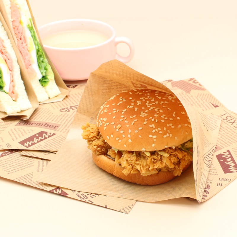 READY STOCK 100PCS Bakery Design Triangle Bag Sandwich Paper Bag Donuts Bag Burger Bag Bakery Paper Bag Waffle Paper Bag