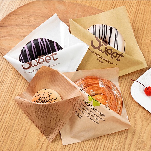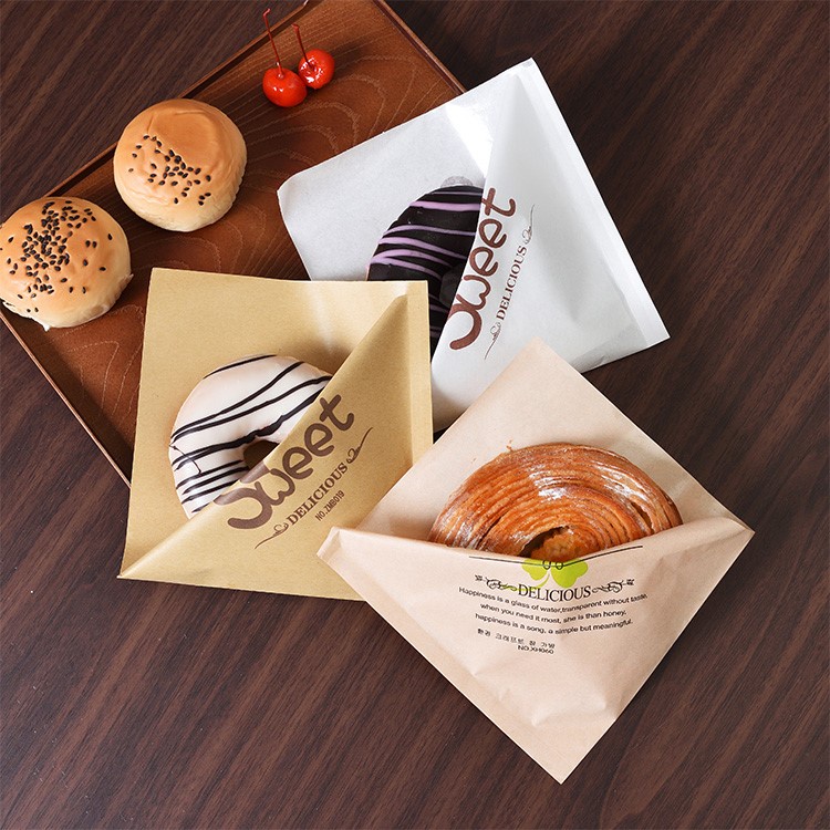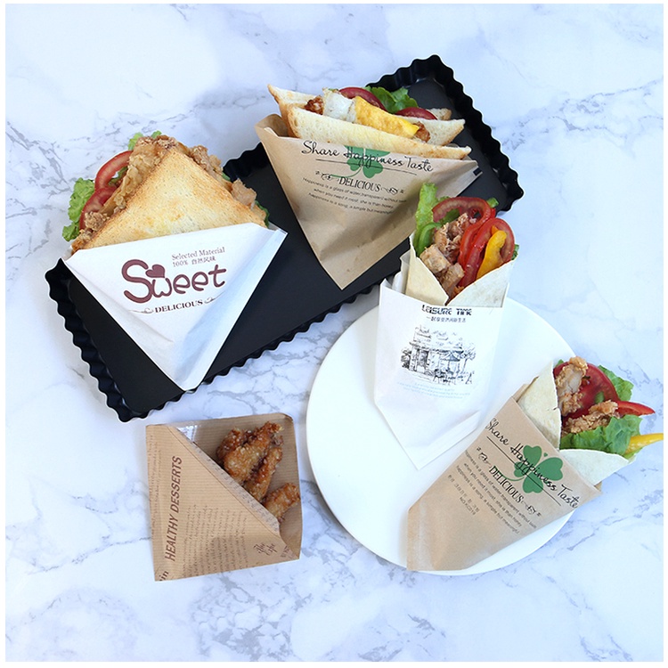 READY STOCK 100PCS Triangle and One Side Bag Sandwich Paper Bag Donut bag Burger bag Bakery Paper Bag Waffle Paper Bag