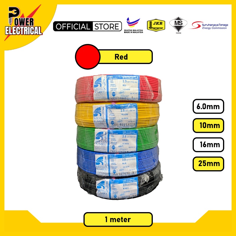 READY STOCK [1METER] MEGA Cable 100% Pure Copper Wire Wiring 6.0mm/10mm/16mm/25mm
