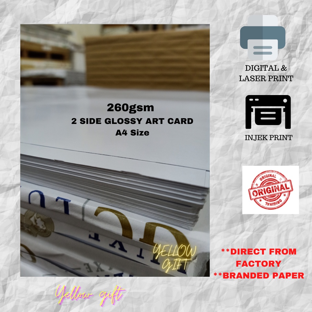 READY STOCK 260GSM GLOSSY ART CARD/ KERTAS KAD A3 A4 A5 (2'SIDE COATED GLOSSY) Invitation card/ book cover/ Card print