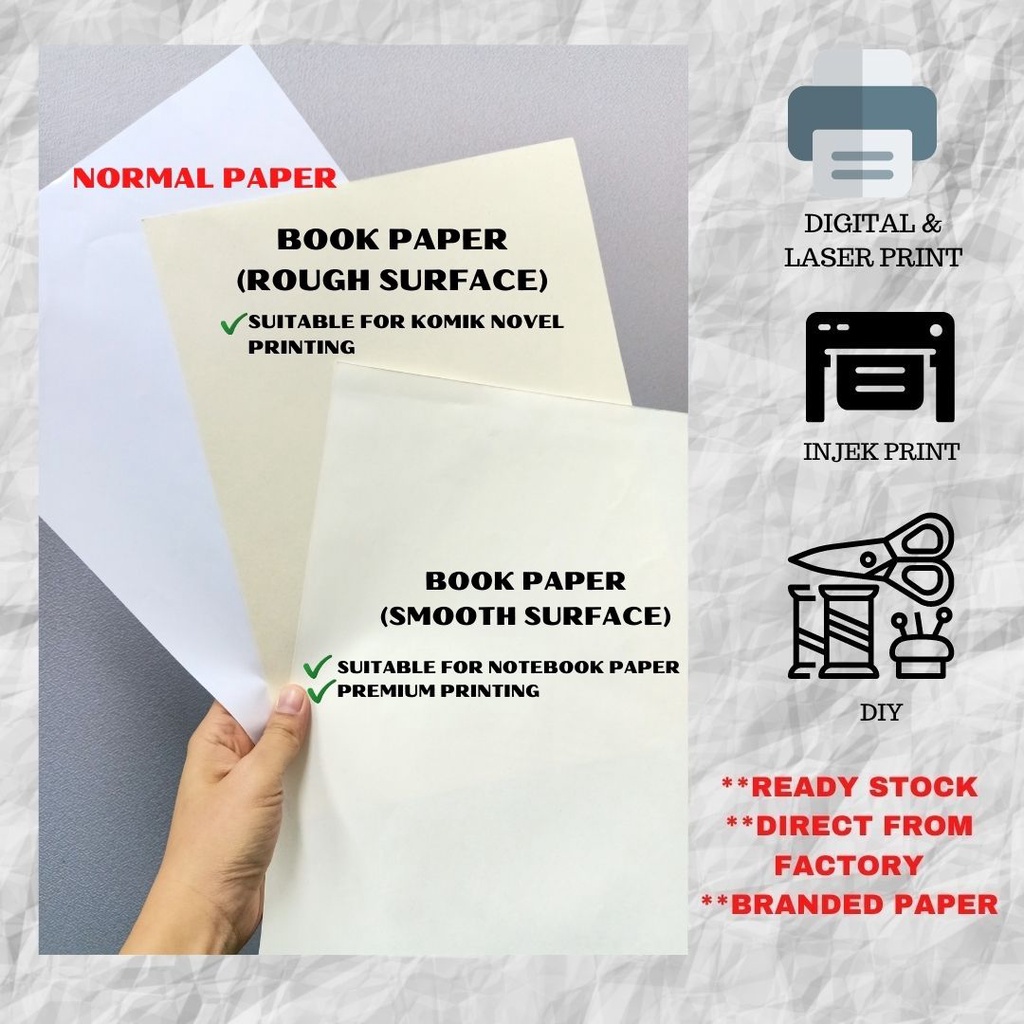 READY STOCK 78GSM CREAM PAPER/BOOK PAPER (Rough/Smooth)/NOVEL/KERTAS KOMIK/Notebook YELLOW PAPER/ LASER PRINT/BOOKLET