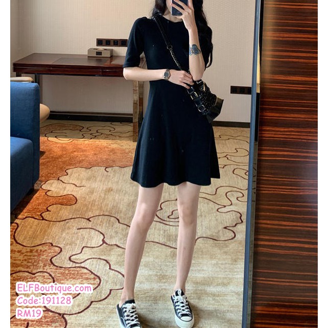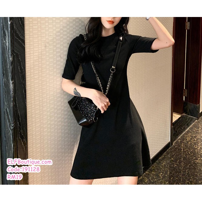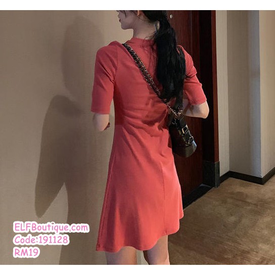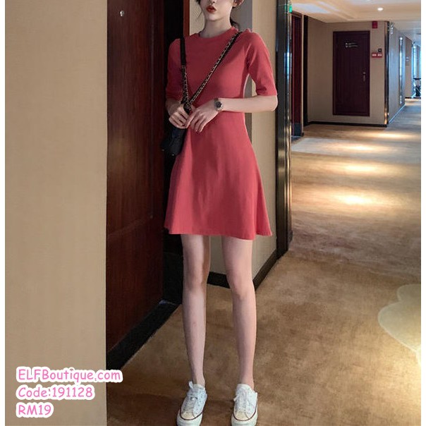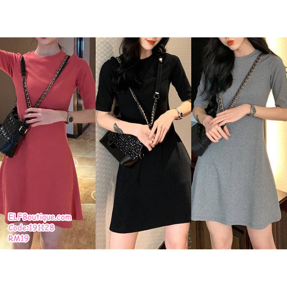 READY STOCK A Line Short Sleeve Slim T shirt Dress Midi Dress Red/Grey/Black 191128