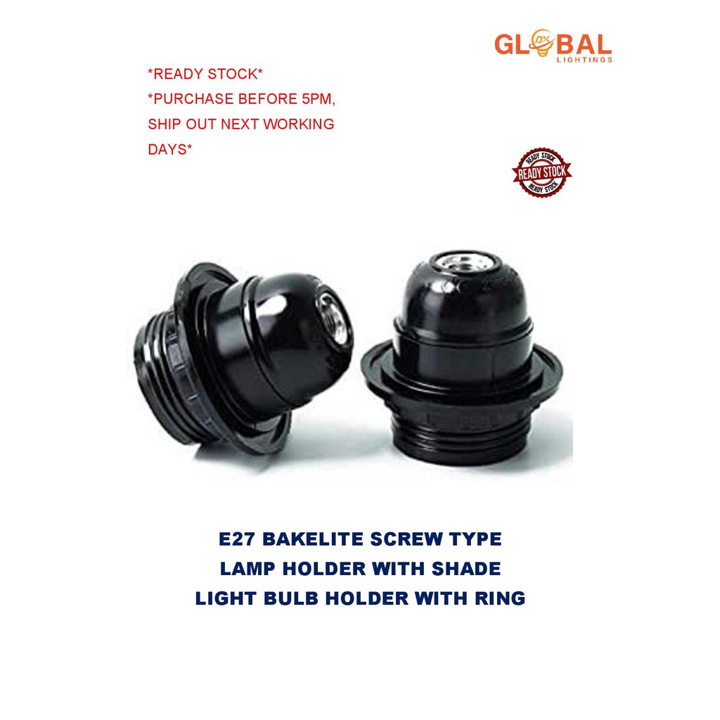 READY STOCK E27 Bakelite Screw Type Lamp Holder With Shade Light Bulb Holder With Ring