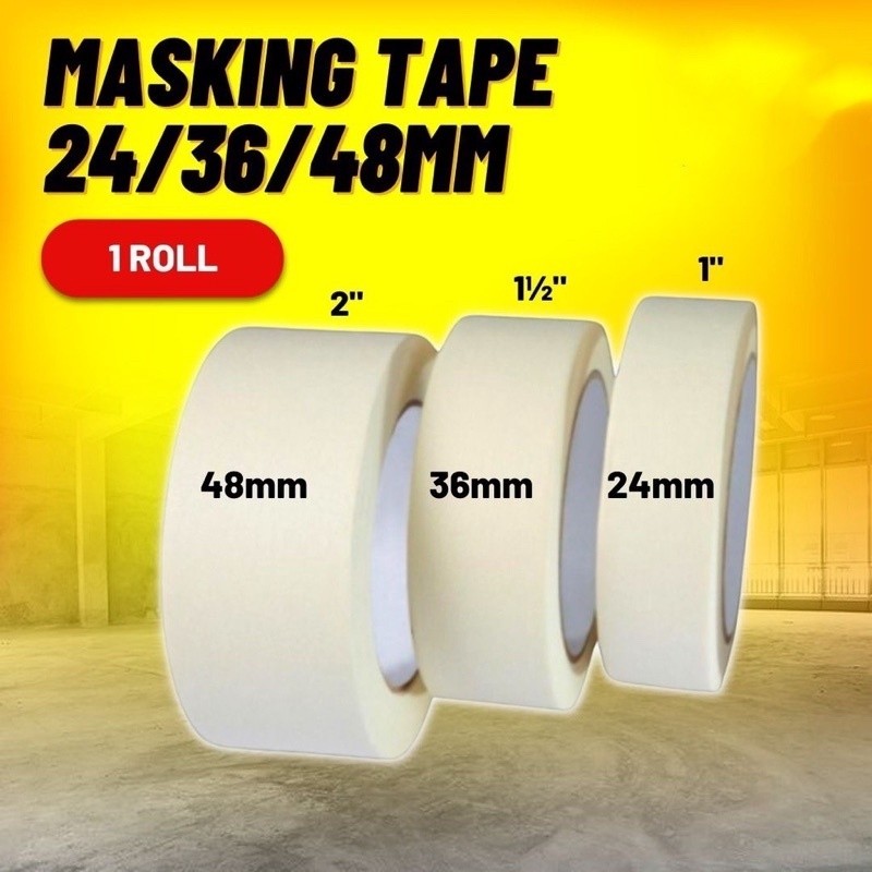 READY STOCK Masking Tape (24mm/36mm/48mm) For Painting Adhesive Tape White Tape Packaging Tape Kertas Tape Pita Pelekat