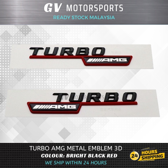 READY STOCK Mercedes Benz AMG TURBO 2 Pieces 3D Letter Logo ABS Car Auto Emblem Badge Sticker Decal For Mercedes Benz