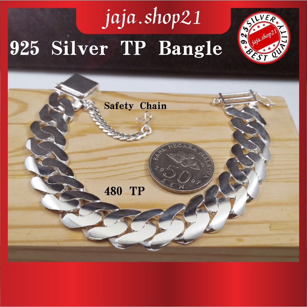 READY STOCK | Original 925 Silver Bracelet 480 TP Bangle For Men / Gelang Tangan Lelaki Tambah Rantai Kecil Perak 925