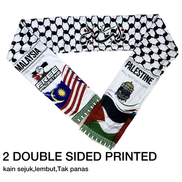 READY STOCK PALESTINE HEADBAND MAFLA SCARF SAVE GAZA PALESTINE AQSA DOUBLE PRINTED SELENDANG PALESTINE