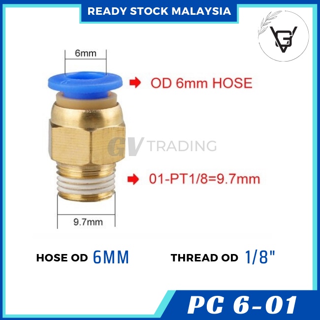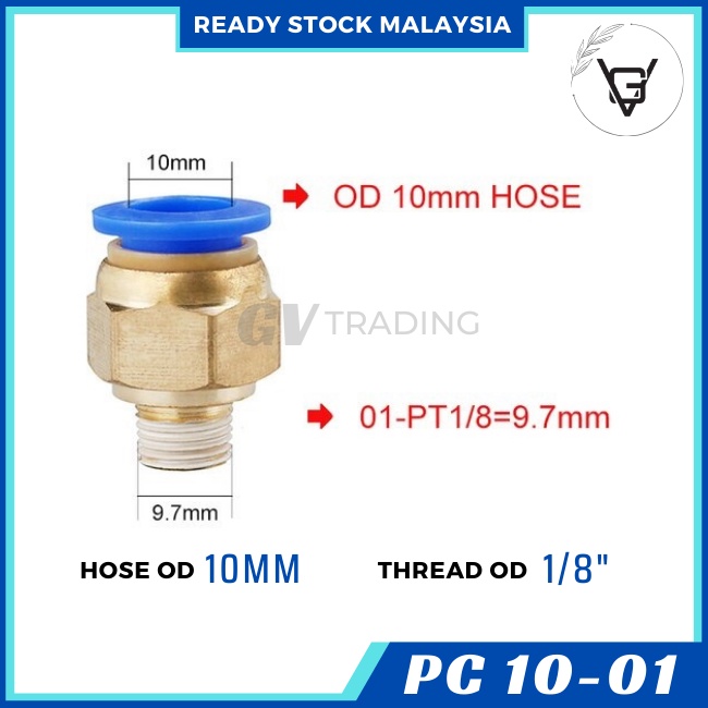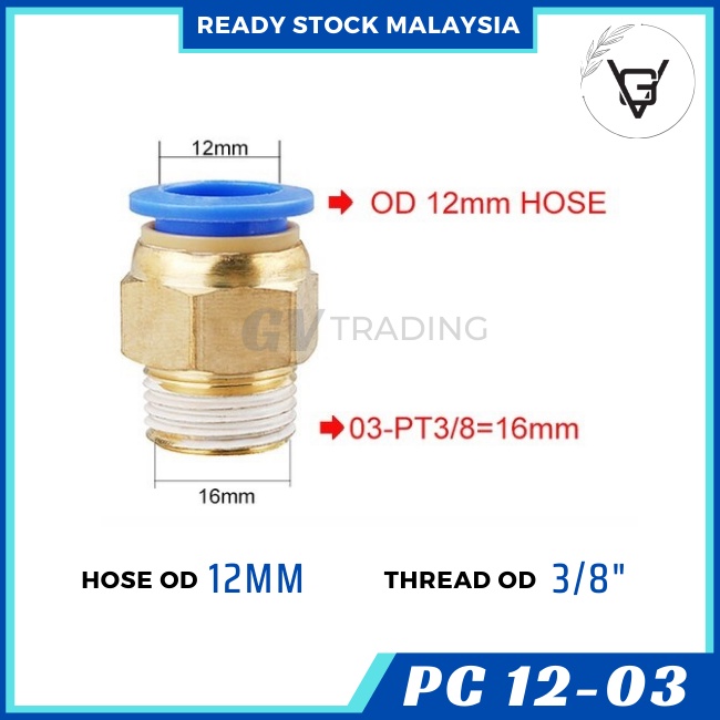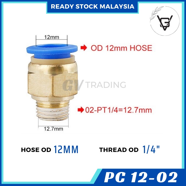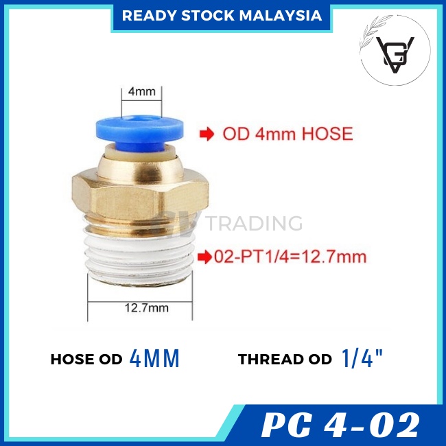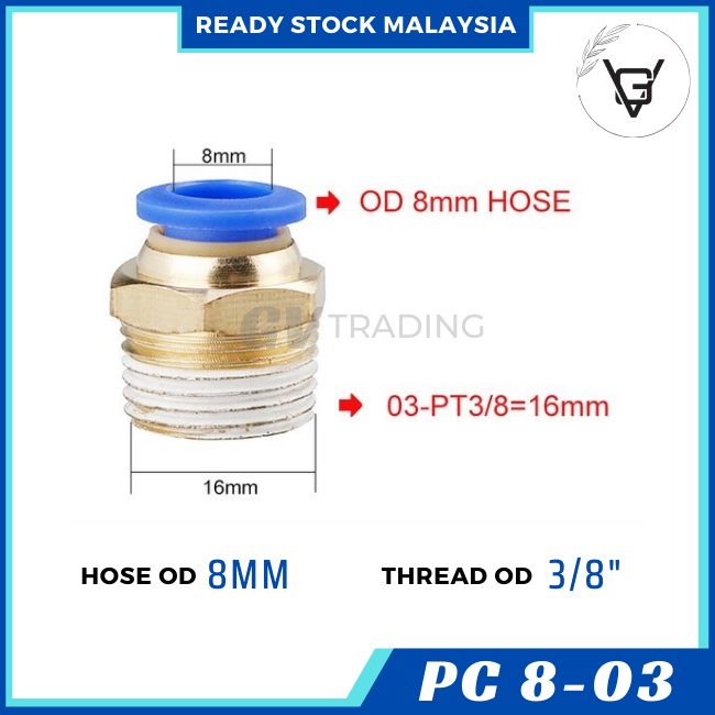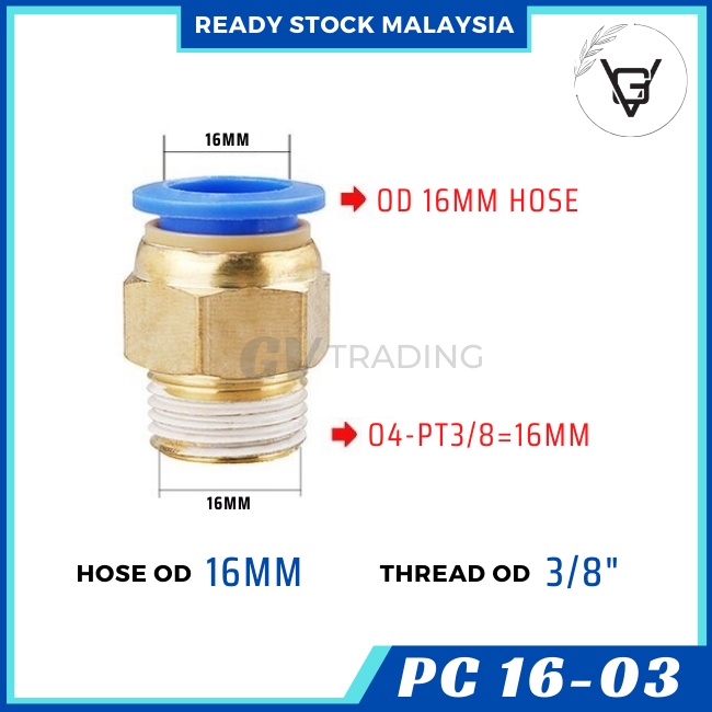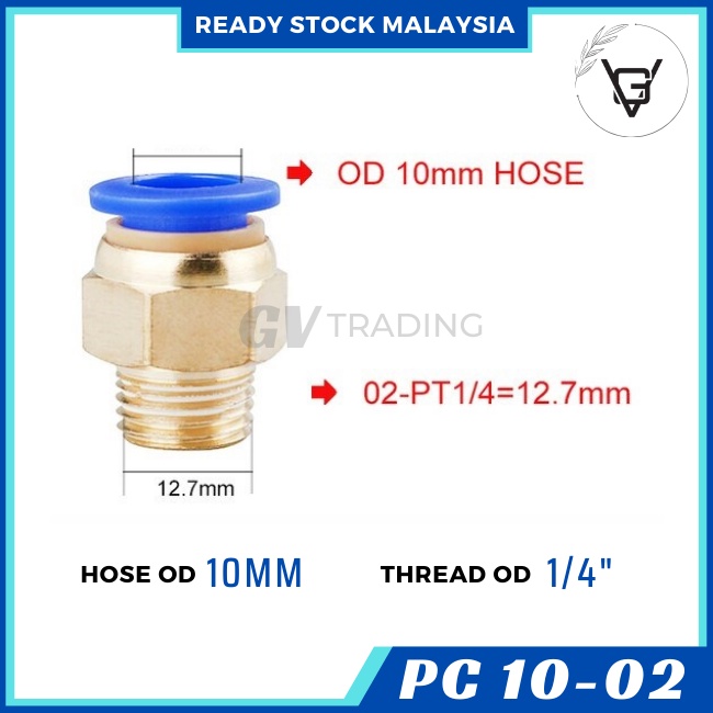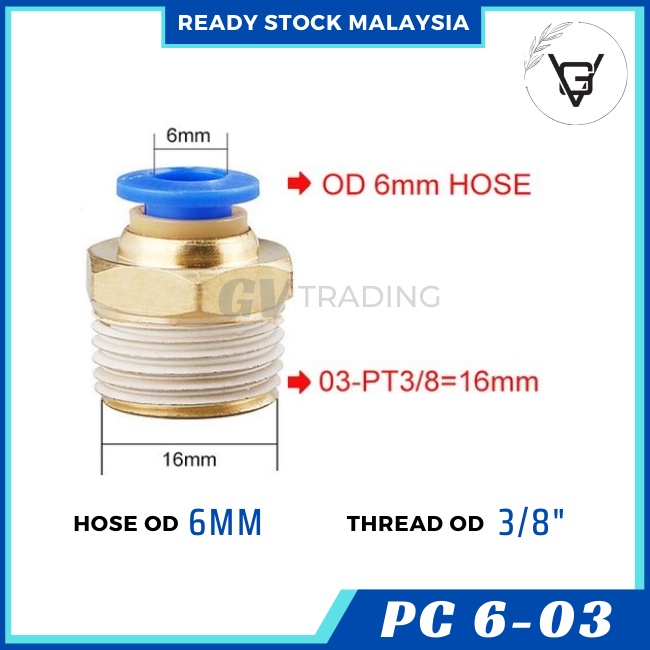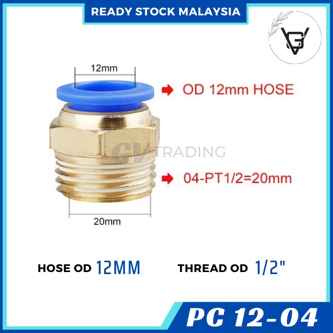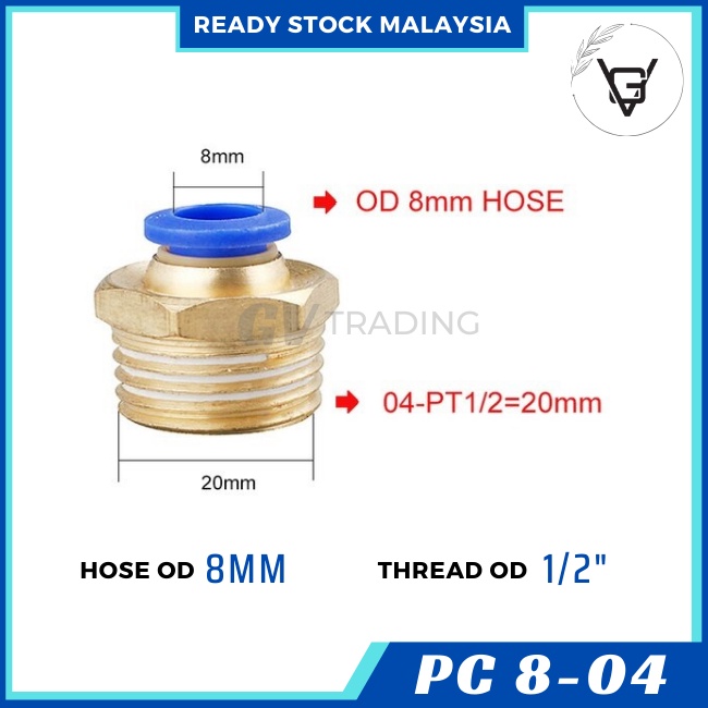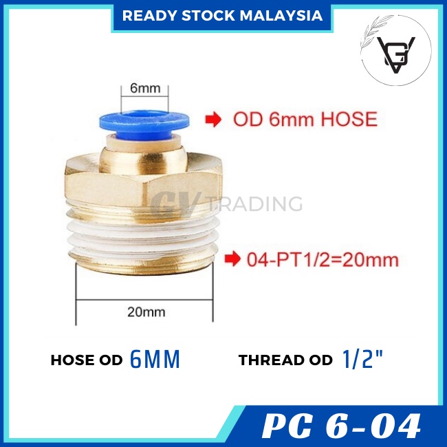 READY STOCK Pneumatic PC 4 ~ 16mm, Pneumatics PC Series One-Touch Air Hose Fitting Straight Type, Pneumatic Fitting