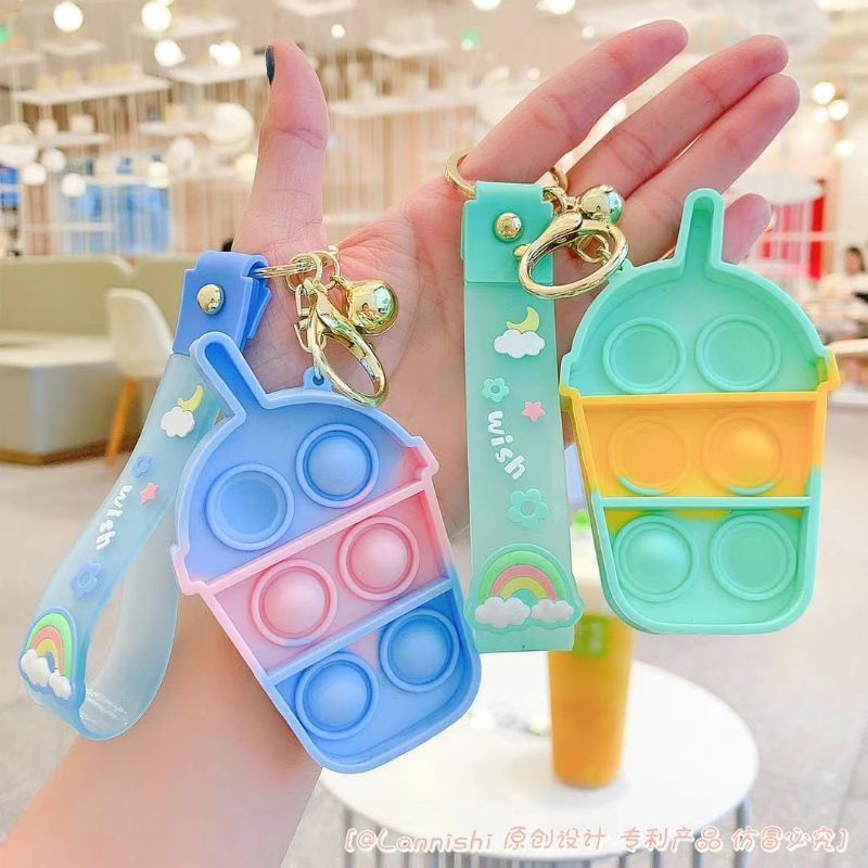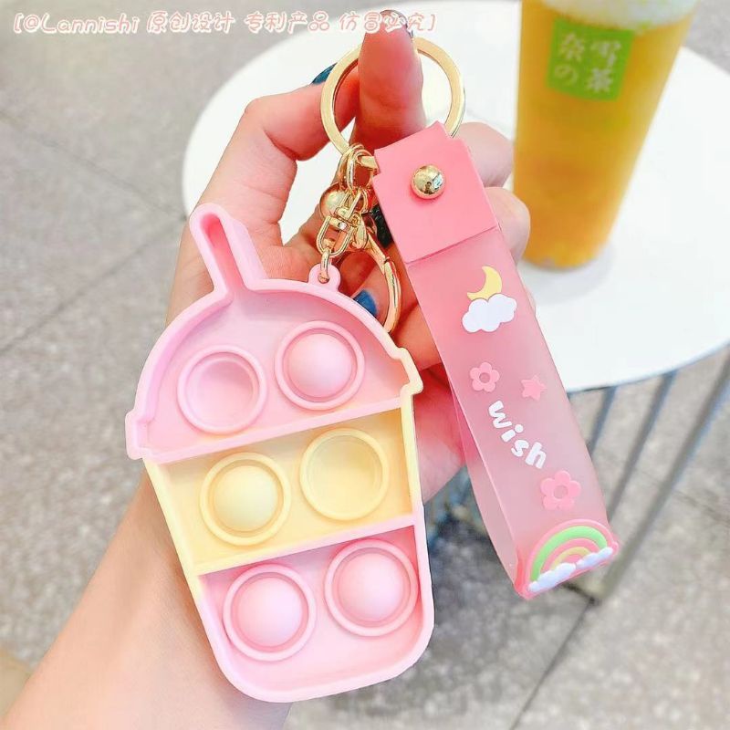 READY STOCK Pop It Mini Keychain Ice Cream Silicone Pop it Bubble Fidget Toys Anti-Stress Push Pop Bubble Sensory Toy