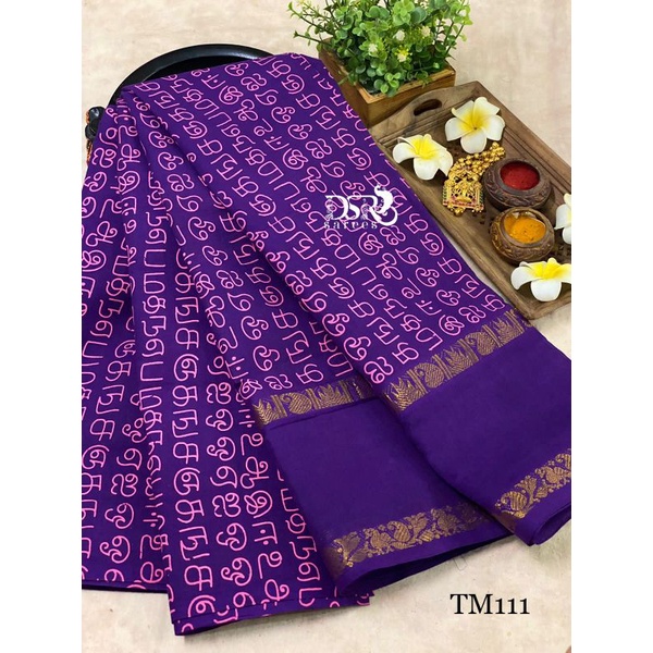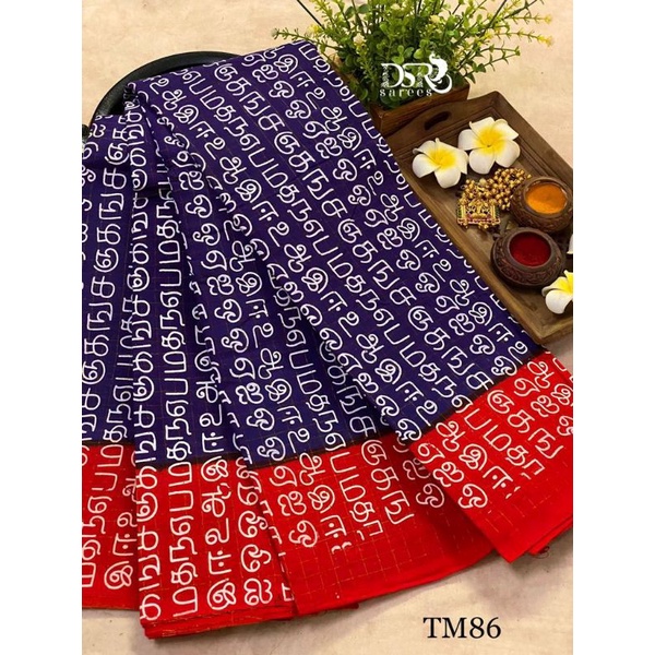 READY STOCK SENTHAMIZH SUNGUDI SAREES COTTON SAREES FASHION TAMIL FONT SAREE