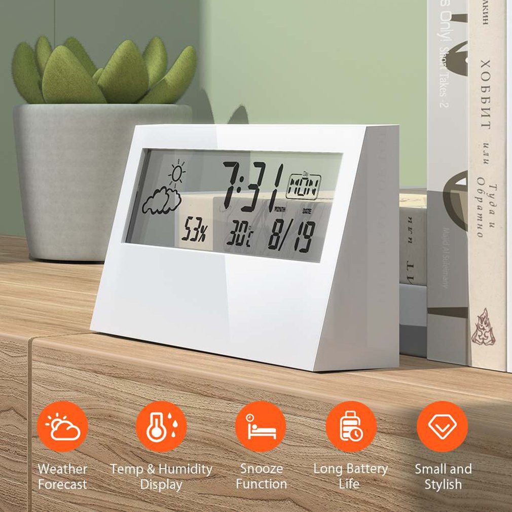 READY STOCK Transparent Alarm Clock Digital Alarm Weather Temperature Date Alarm Clock
