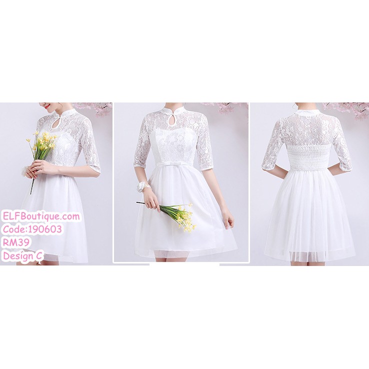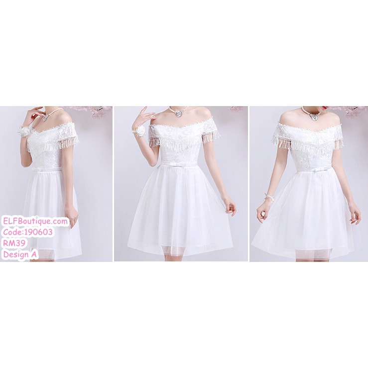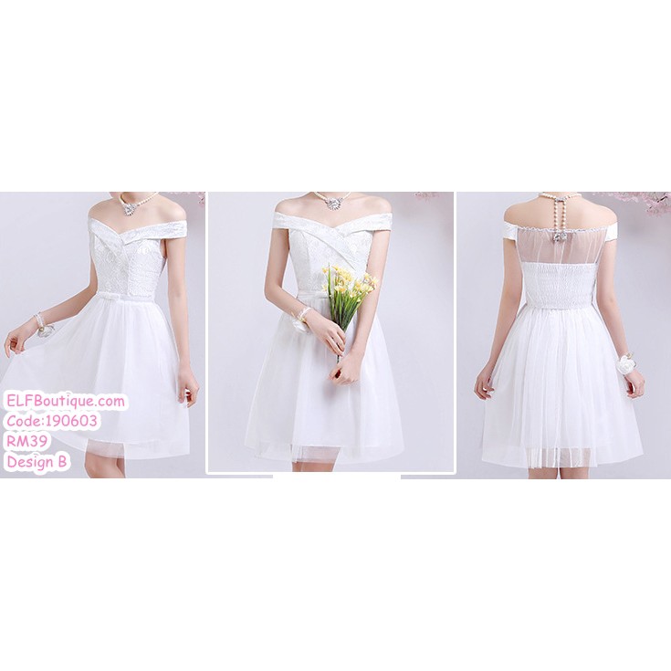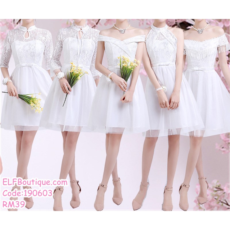 READY STOCK White Bridesmaid Short Dinner Dress Evening Dress 190603