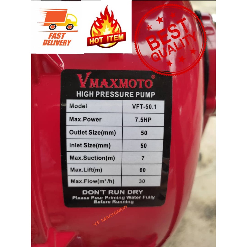 READY STOCK high pressure water pump- vmaxmoto 7.5hp - 2 inch/1.5inch high head 2" pump (hight quality)