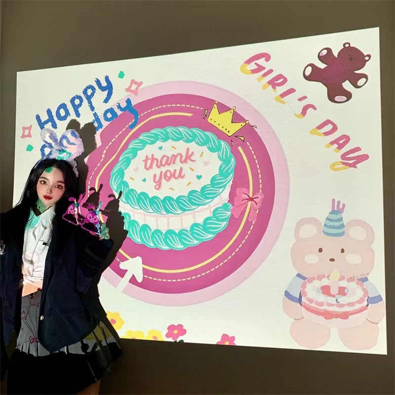 READYSTOCK Creative Mini Happy Birthday Projector Korean Ins Photo Projection Lamp Children's Party Decoration