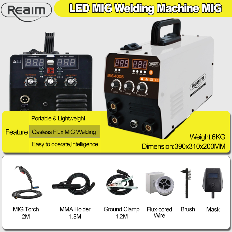 REAIM Mig Welding Machines MIG400 Gasless Set 3 in 1 MIG MMA TIG Cast Iron Aluminum Welding Rod