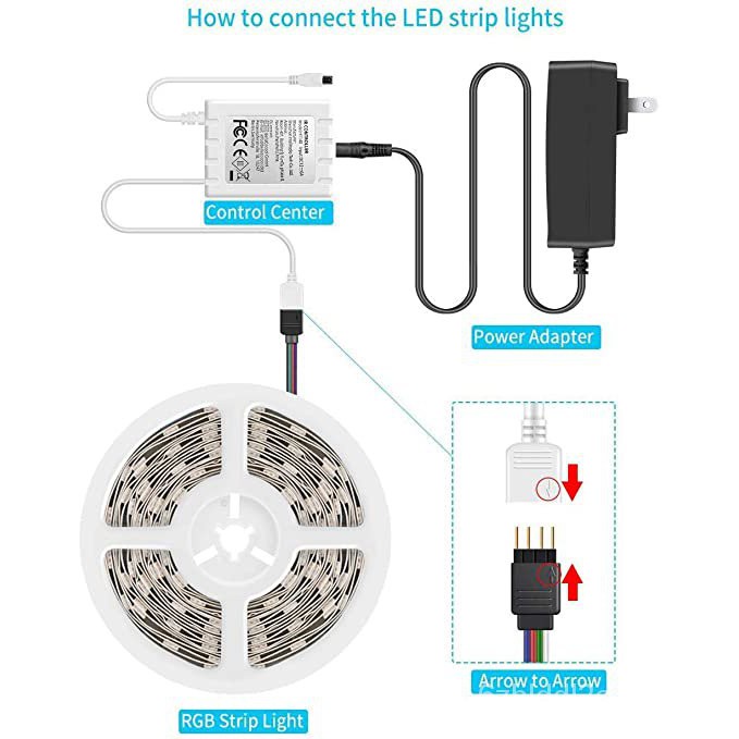 RECCI Led Strip Lights Kit, 32.8Ft RGB Light Strip with Remote, Controller Box and Support Clips for Room, Bedroom, Home