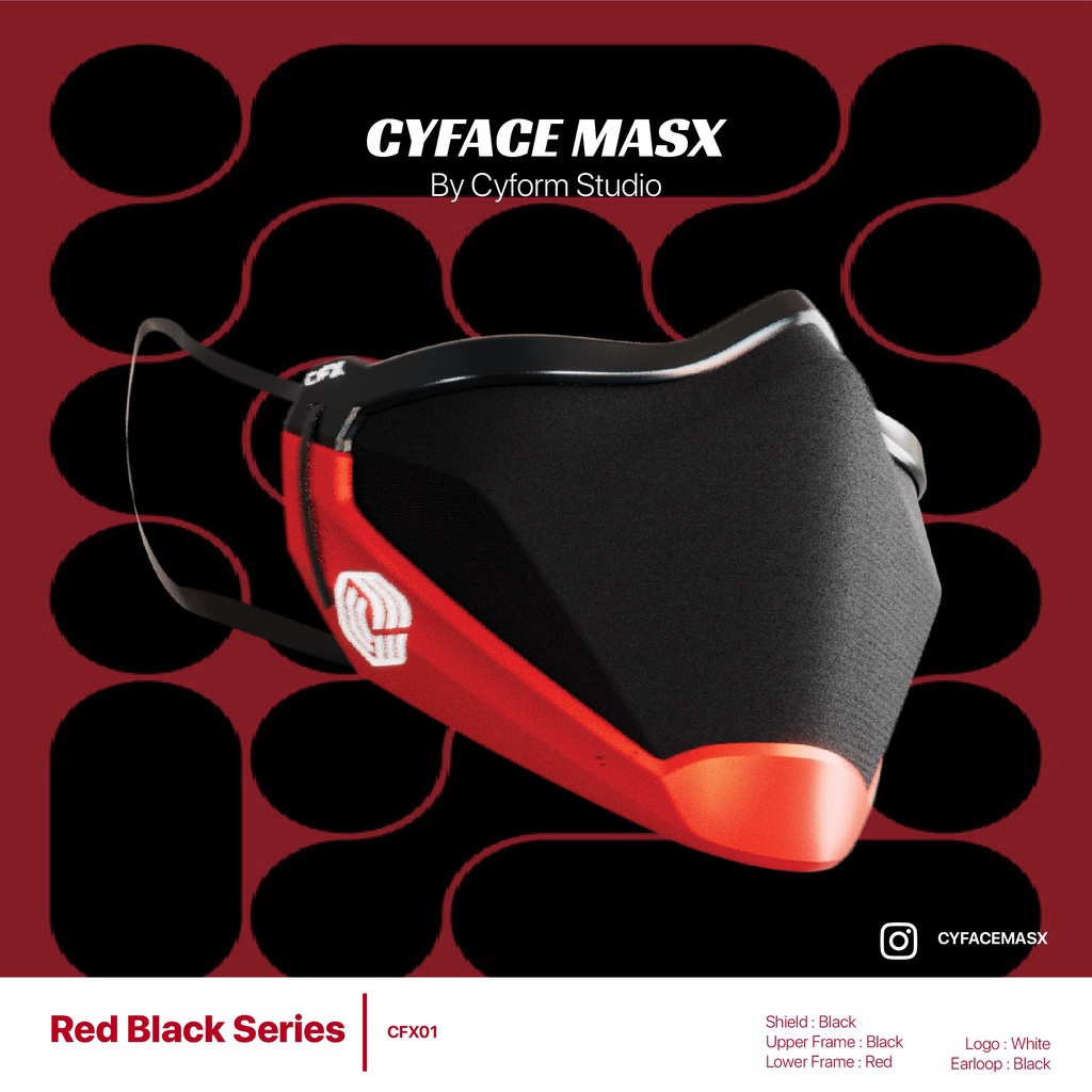 RED BLACK CYFORM 3D PRINT CYFACEMASX VIRAL TECHWEAR FACE MASK CFX01