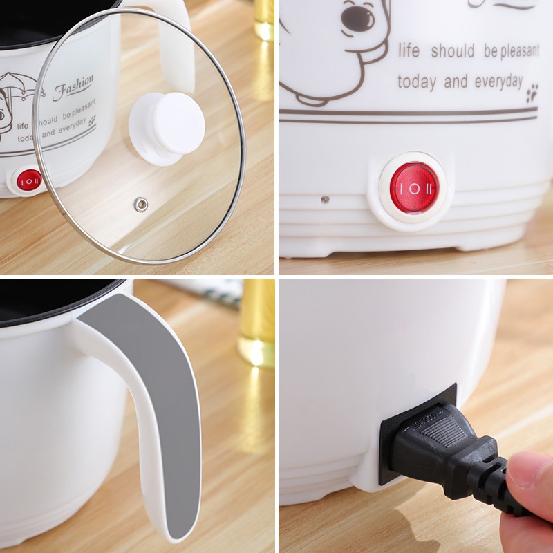 REDBUZZ 1.8L Non Stick Electric Pot /Mini Rice Cooker With Steamer Frying Pan Electric Cooker Cooking Pot Periuk Nasi
