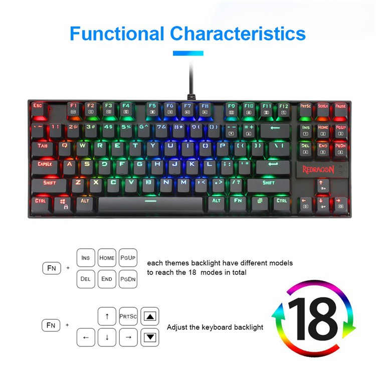 REDRAGON K552 RGB Mechanical Gaming Keyboard 87 Keys RGB Waterproof Keyboard Tactile Anti Ghosting RGB Keyboard