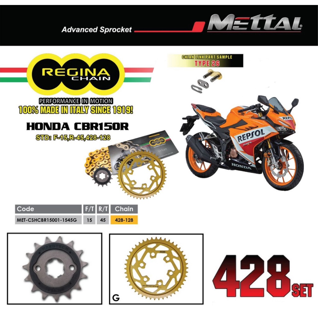 REGINA Honda CBR150 Sprocket Chain Kit Set 428 Rantai Spoket F15T R43/44/45T Italy ORIGINAL Accessories Racing CBR150R