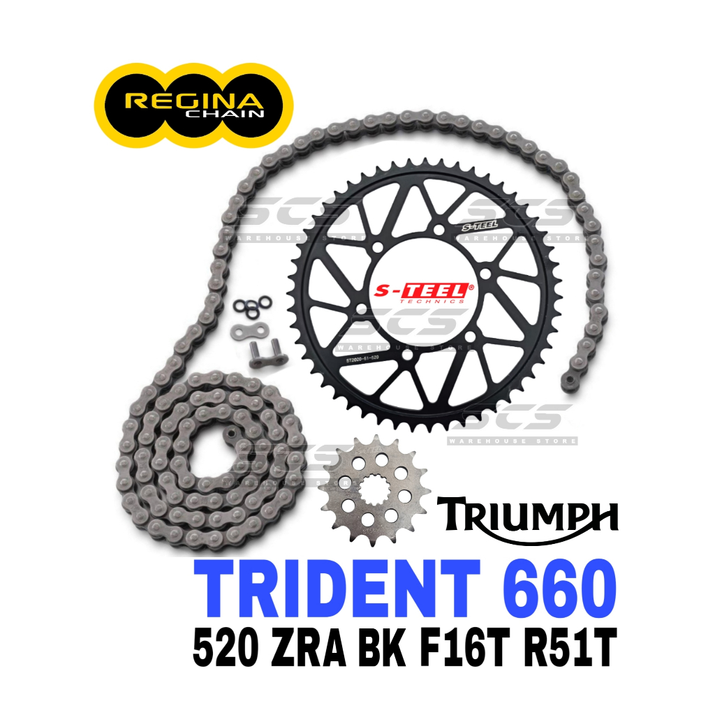 REGINA Sprocket Set TRIUMPH Trident 660 520 ZRT Ring Gold Chain Rantai Spoket ZRING ZRA Black Z Ring Motor TRIDENT660