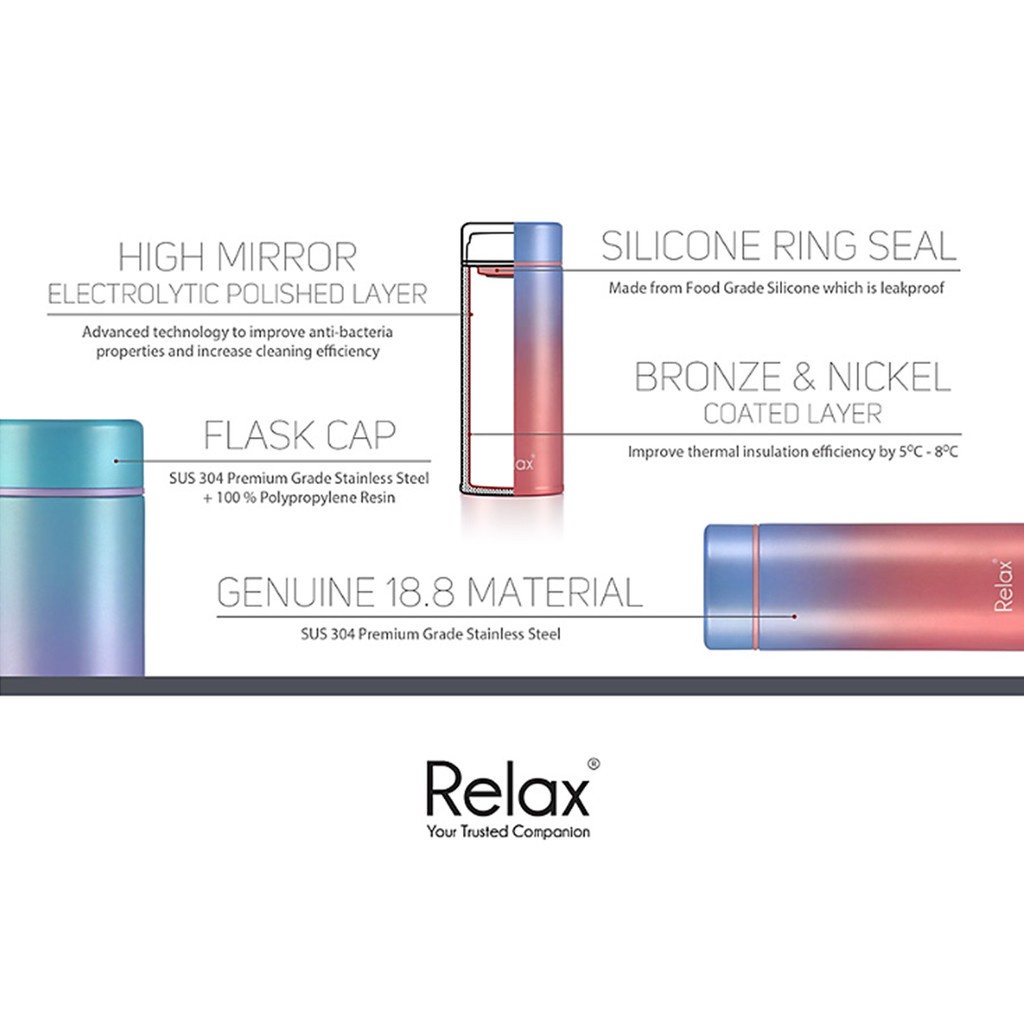 Relax SUS304 Botol Termos Air Panas Keluli Tahan Karat Stainless Steel Thermal Flask Double Wall Insulation 250ml