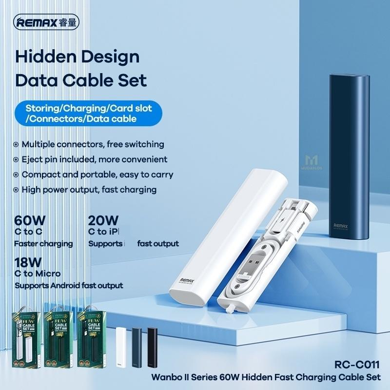 REMAX 60W Type C Fast Charging Cable Set 3 In 1 MDRCC011 Micro USB Type C To C Mini Data Cable Set Powerbank Short Cable