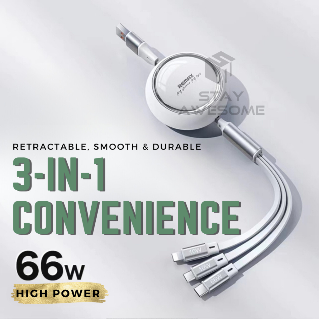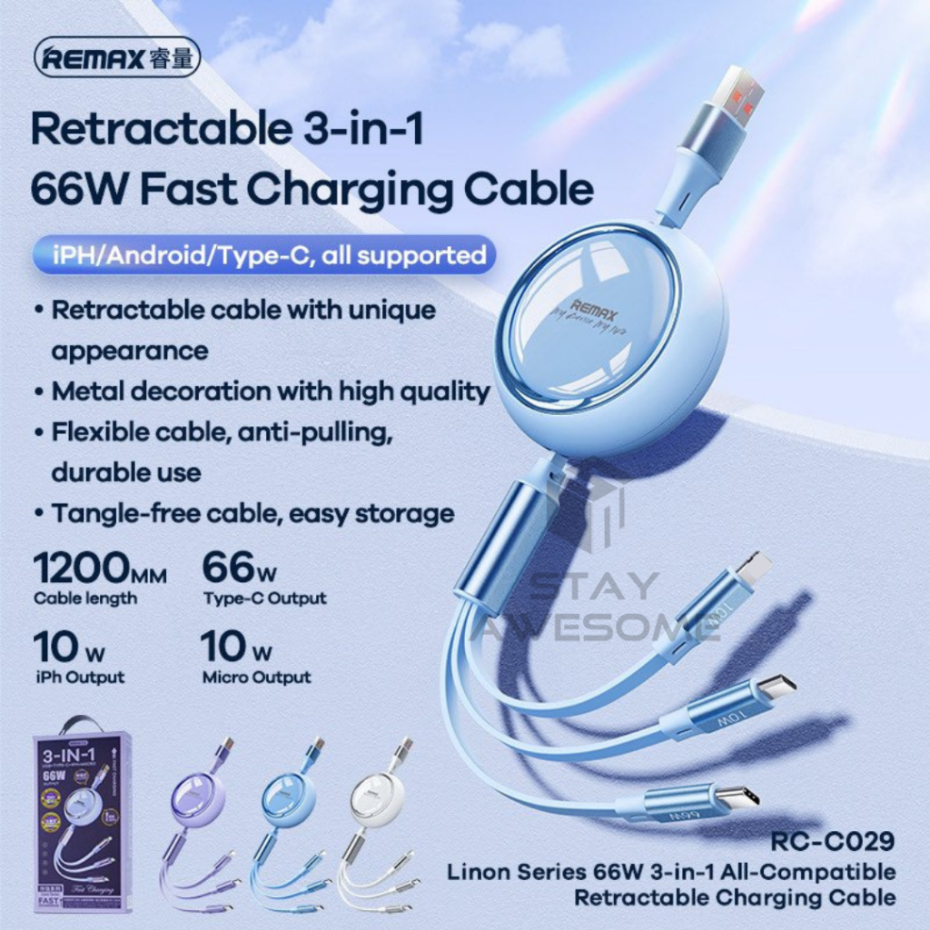 REMAX Cable 3 In 1 Retractable Fast Charging Chargers USB To Type C Micro Phone Data Cabel Android Original PD SARCC029