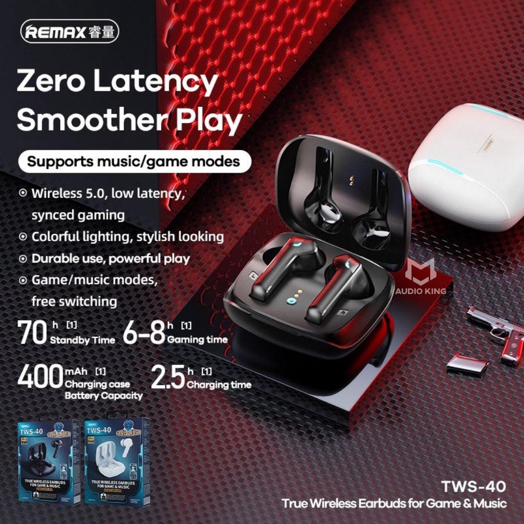 REMAX Earbuds Gaming Earbuds TWS Black Wireless Earphone Low Latency Earbuds TWS-40 Airbuds Wireless Earbuds Wireless