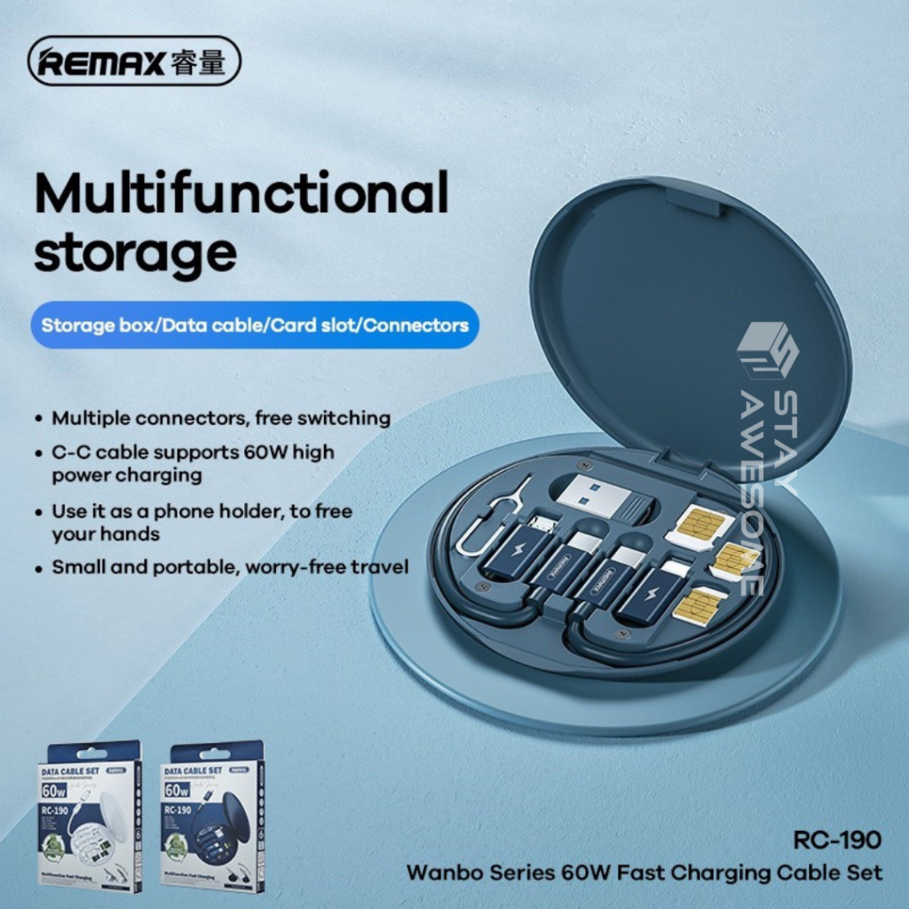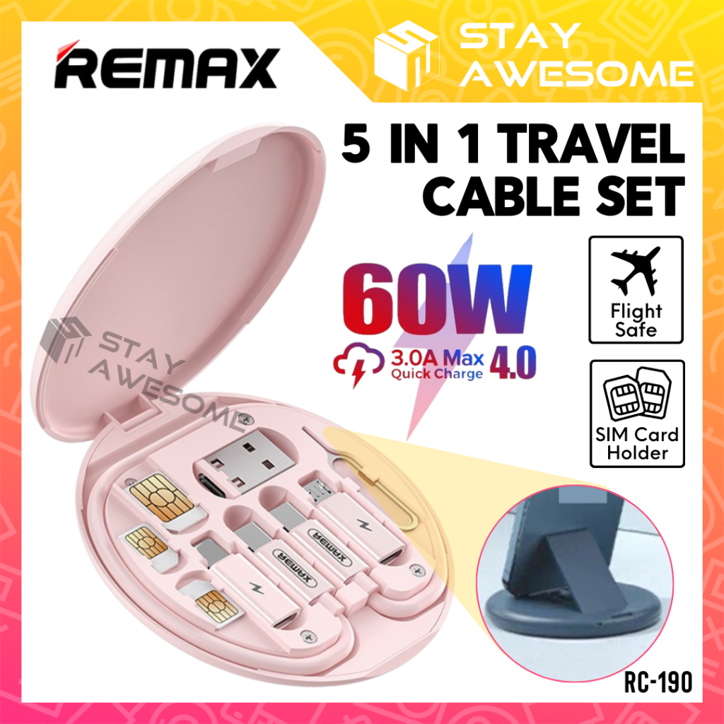 REMAX Fast Charging 3 In 1 Cable Mini 60W Wayar Micro USB C To Type C To Type C Cabel Android SARC190 Sim Card Holder