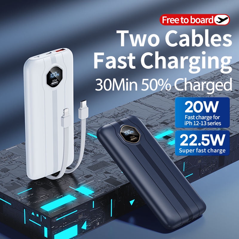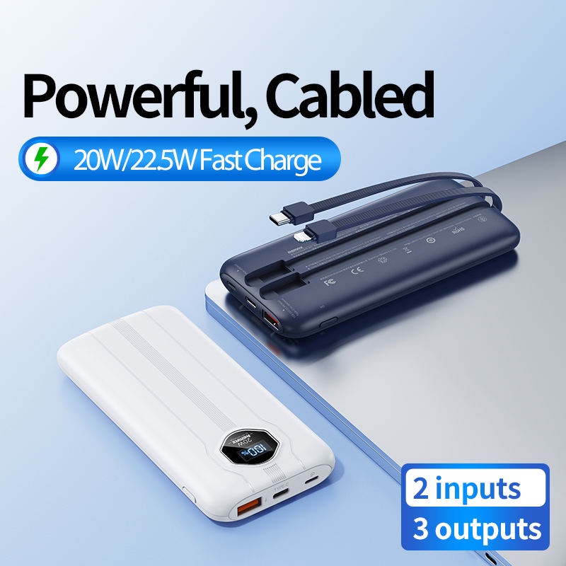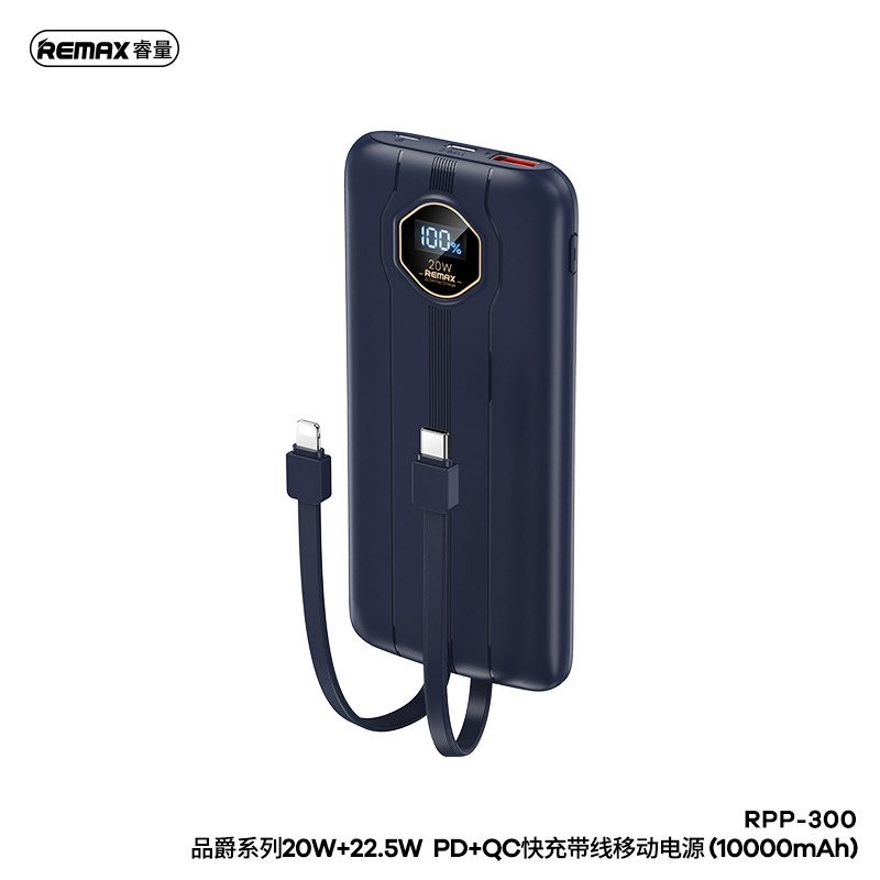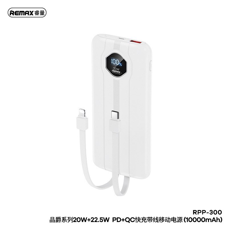 REMAX Powerbank 10000mAh Powerbank Fast Charging Powerbank Remax RPP-300 Flight Safe Powerbank PD Powerbank With Cable