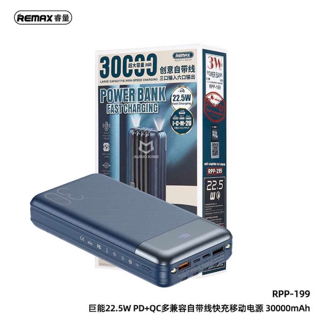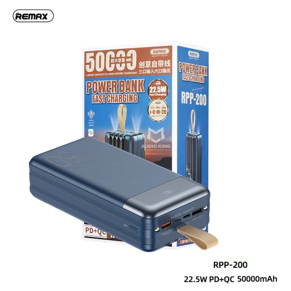 REMAX Powerbank With Built In Cable Powerbank 50000mAh Powerbank 22 5W Powerbank 30000mAh Powerbank PD RPP-199 RPP-200