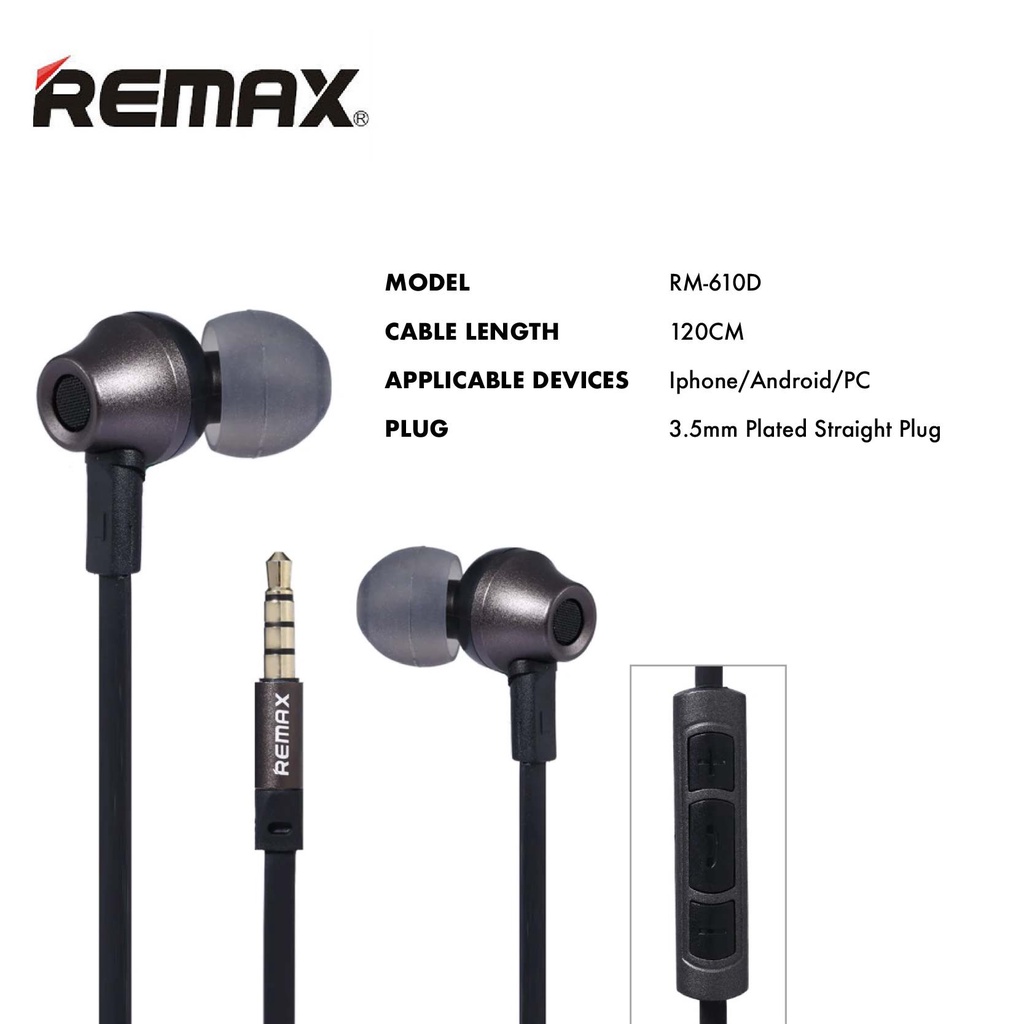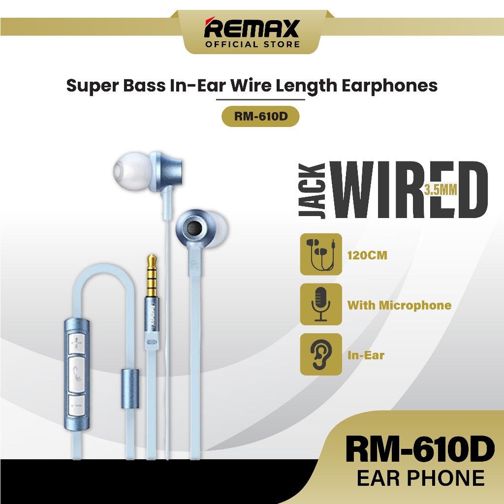 Remax RM-610D Super Bass In-Ear Wire Length Earphones (120cm) Wired Earphone Earphone Bass Headphone Headset